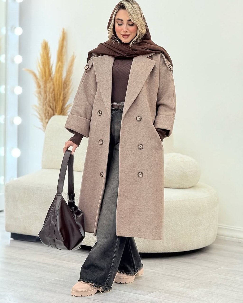 ناموجودپالتو بلند زنانه مدل هلن جنس پیردوپل (توییت) عالی و ضخیم