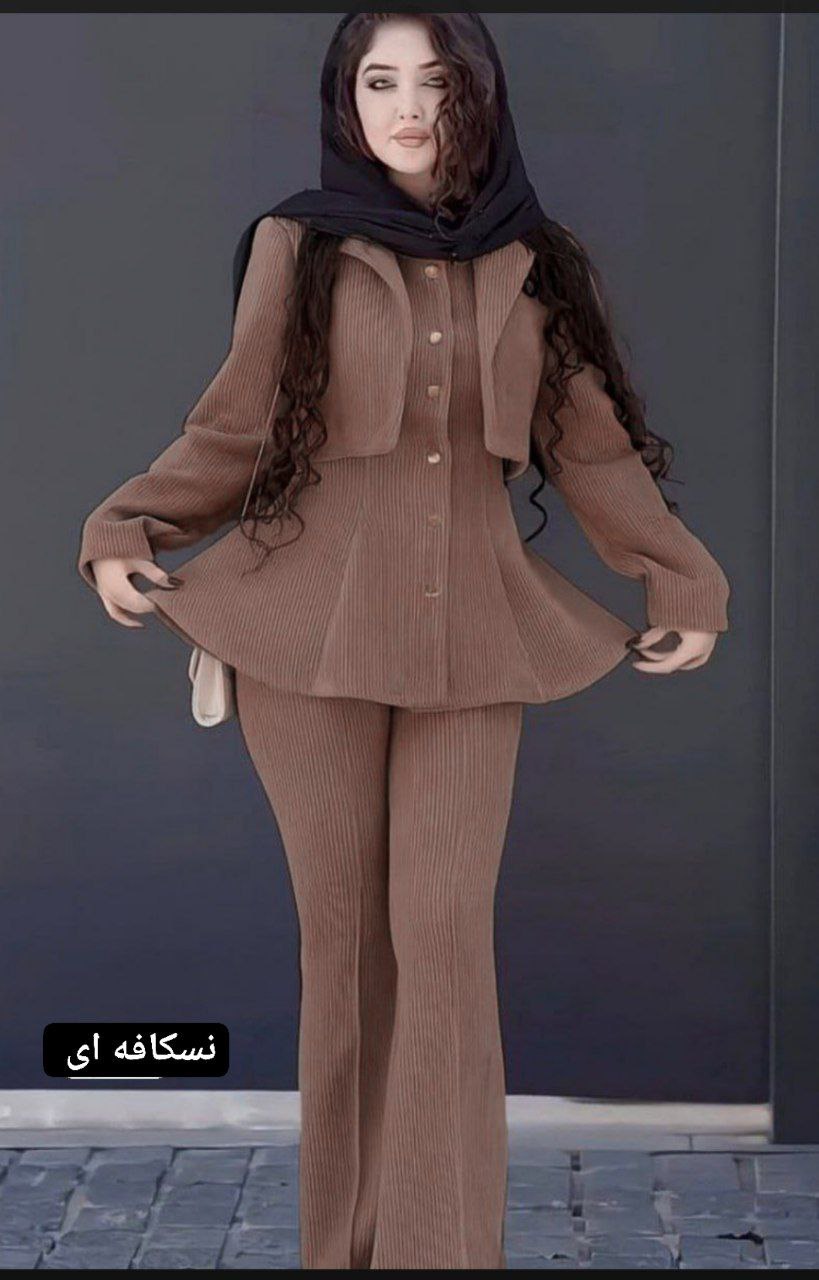 ناموجودست مانتو شلوار زنانه مدل آذین جنس مخمل کبریتی