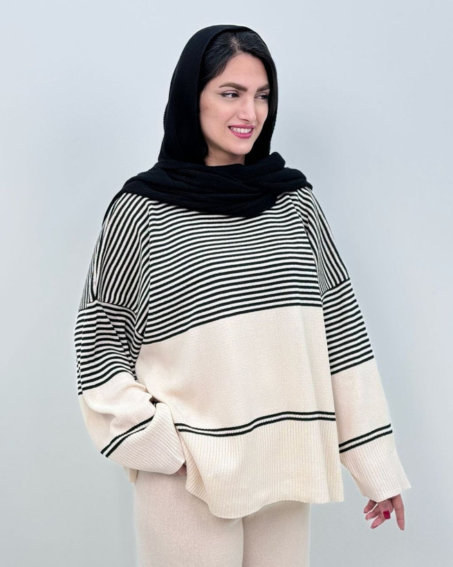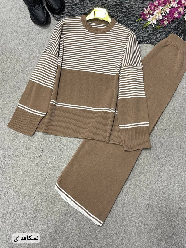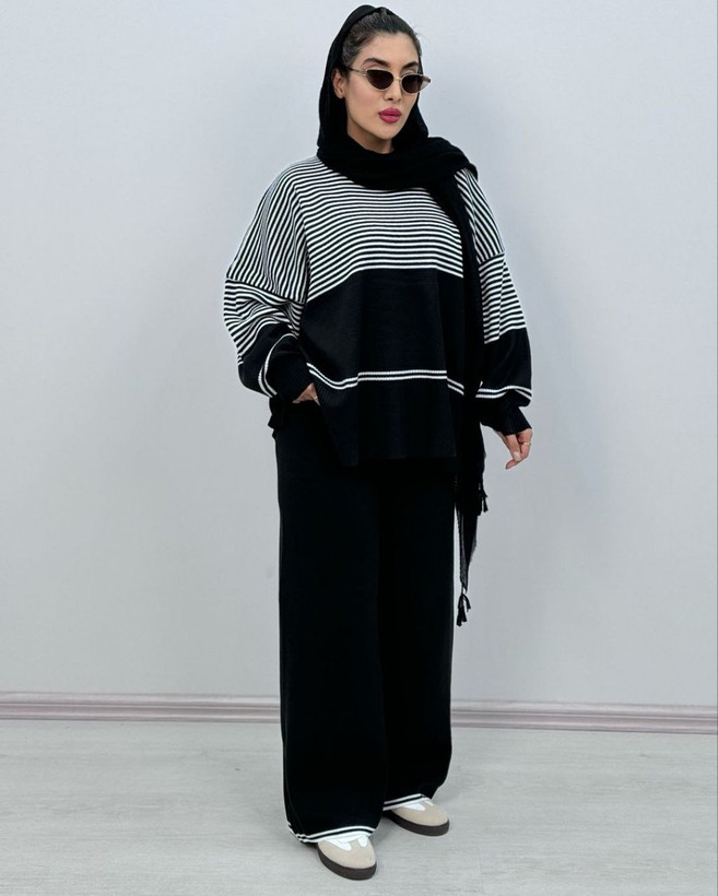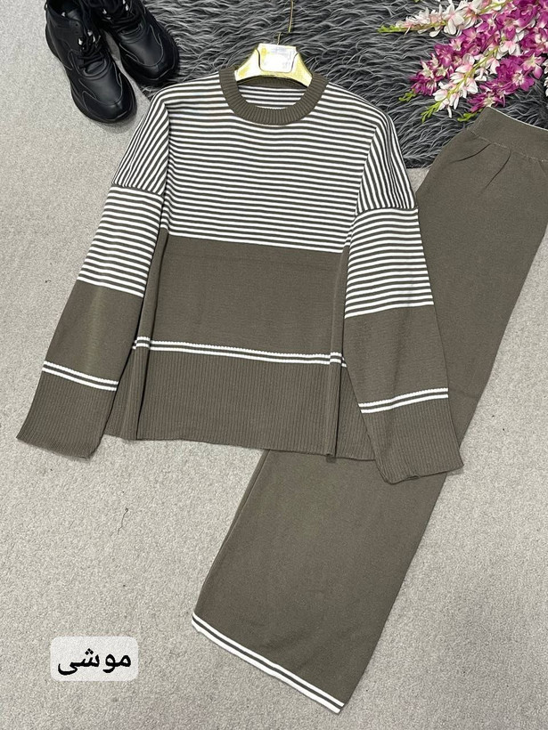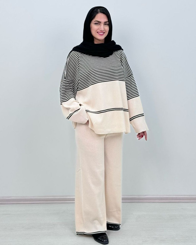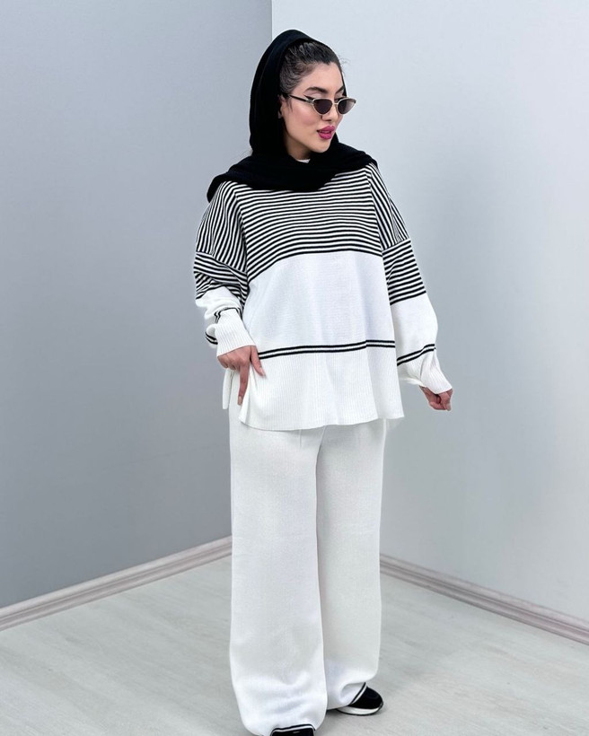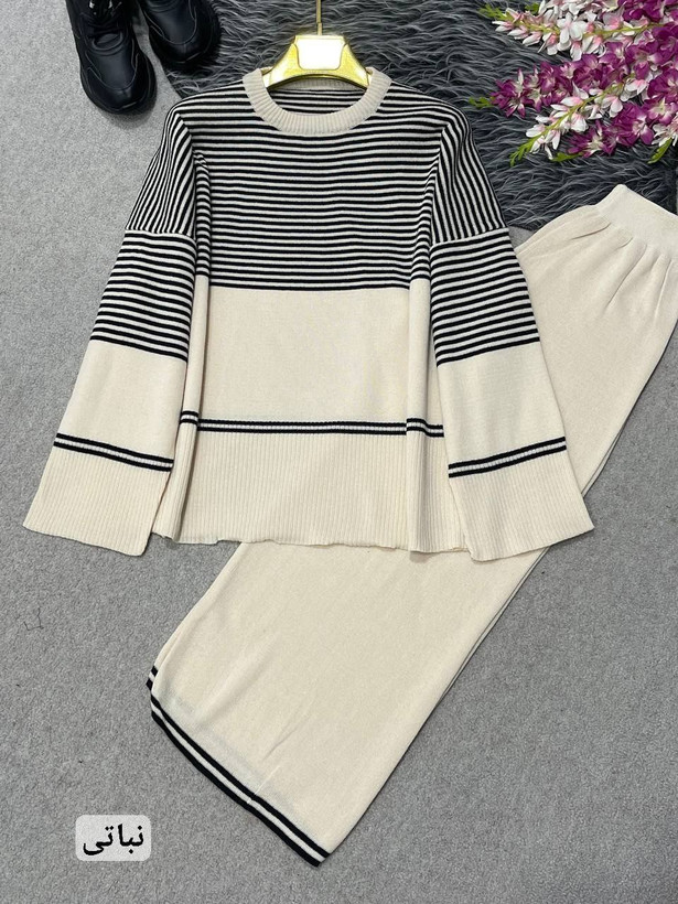 تونیک شلوارزنانه ست راه راه مدل دامون جنس نخ بافت اکرولیک باکیفیت سایزبندی فری سایز38تا48