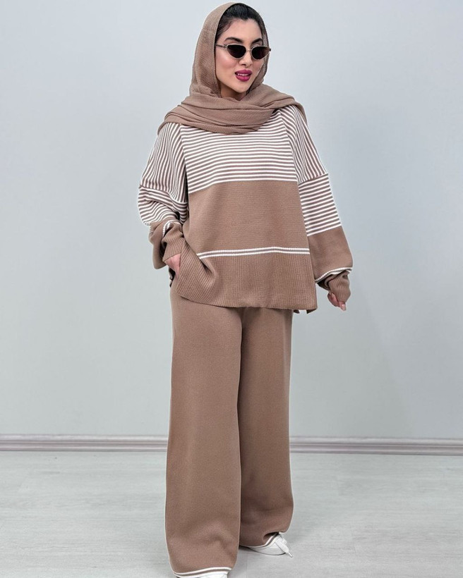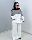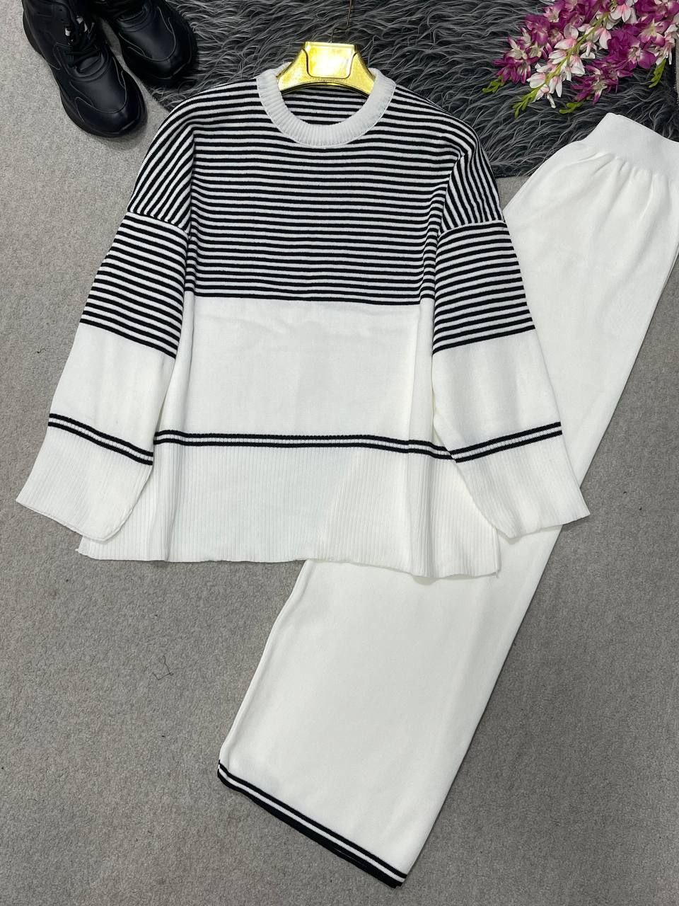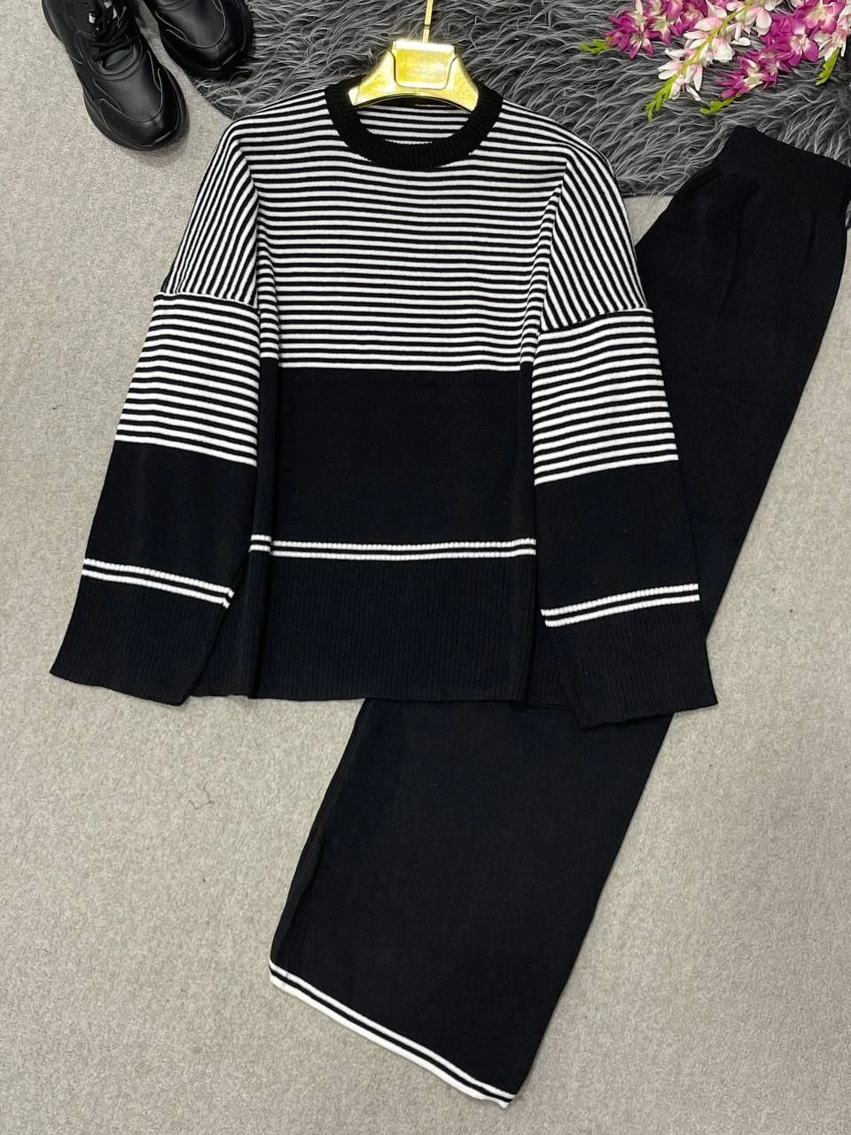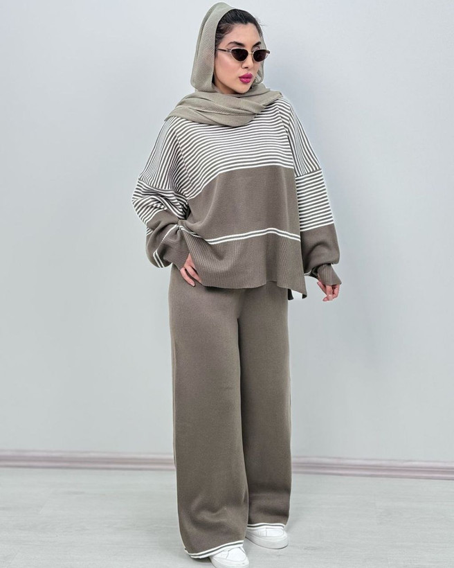 تونیک شلوارزنانه ست راه راه مدل دامون جنس نخ بافت اکرولیک باکیفیت سایزبندی فری سایز38تا48
