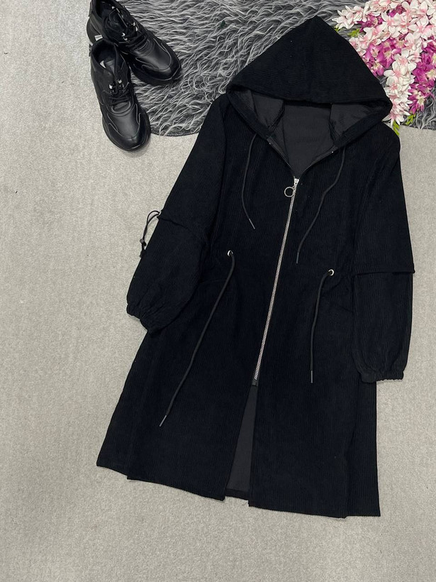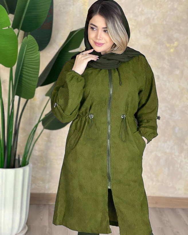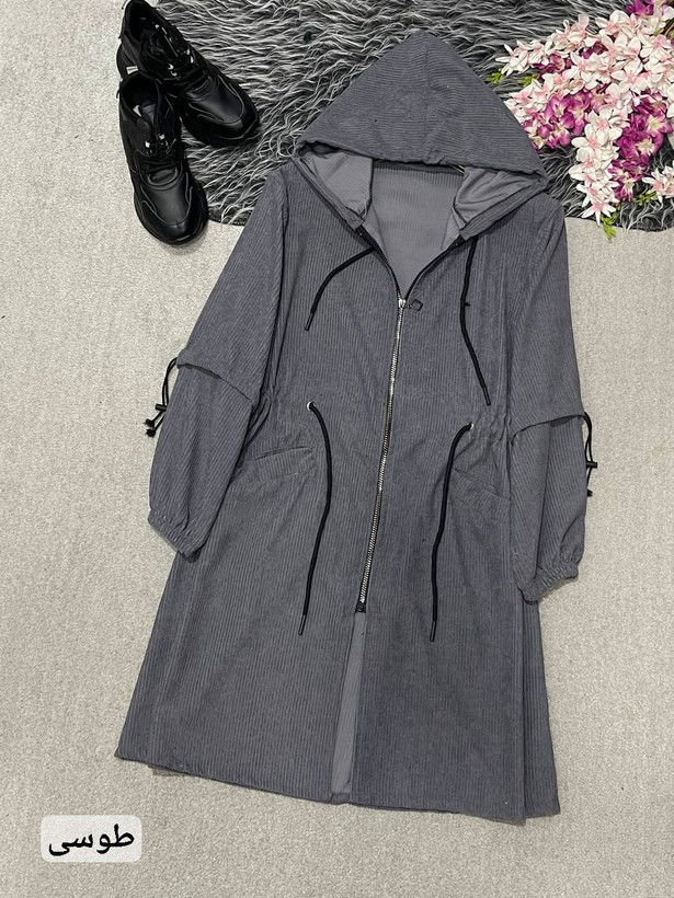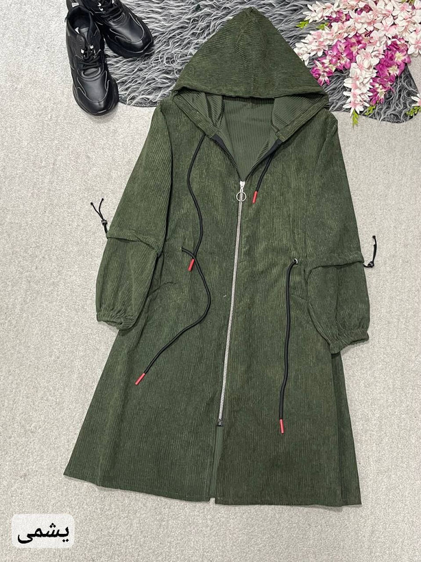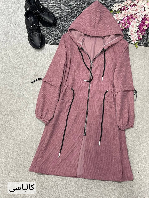 مانتوپاییزه زنانه کمرگت کلاهدارجنس کبریتی سایزبندی فری سایز38تا46