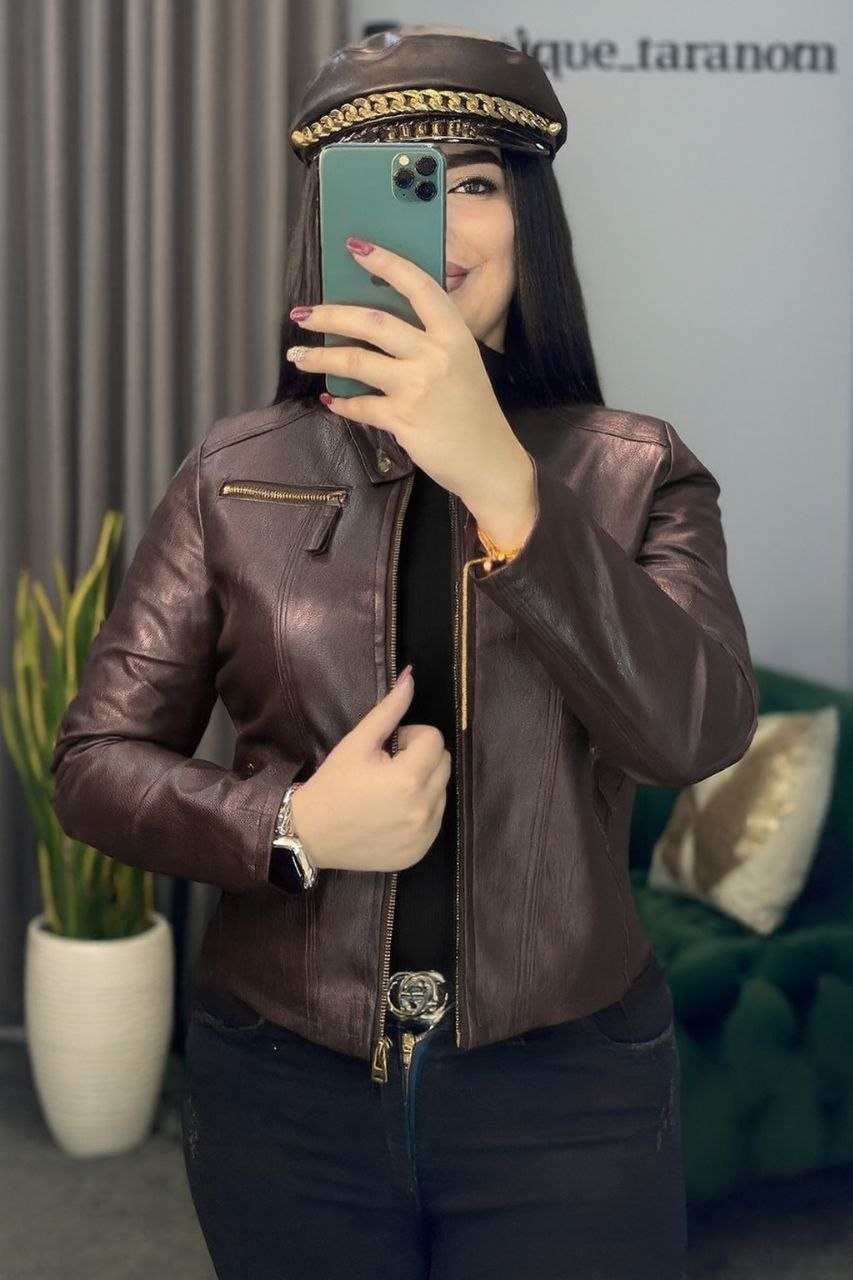 کت چرم کوتاه زنانه با کیفیت عالی سایزبندی 38 تا 48