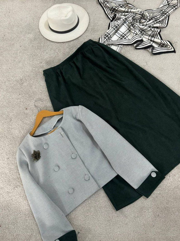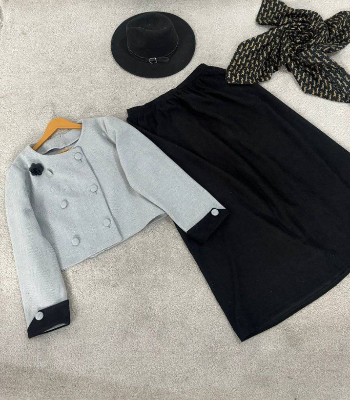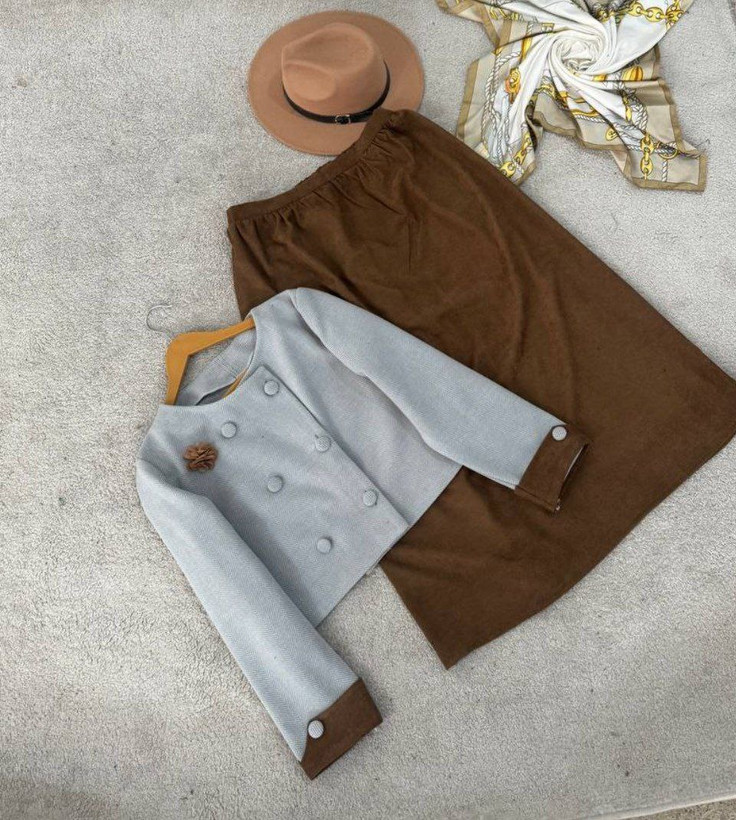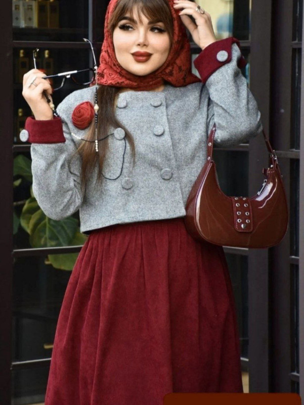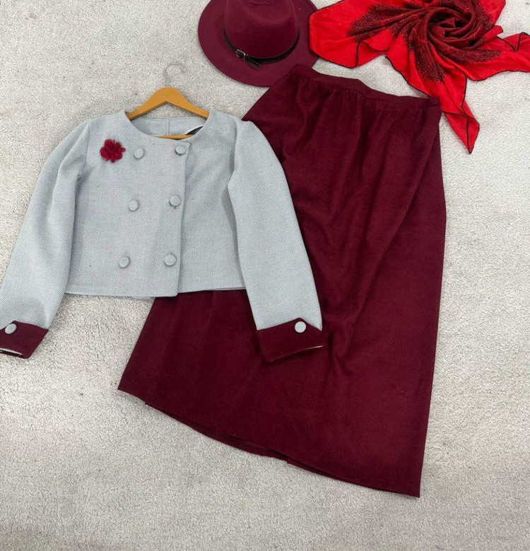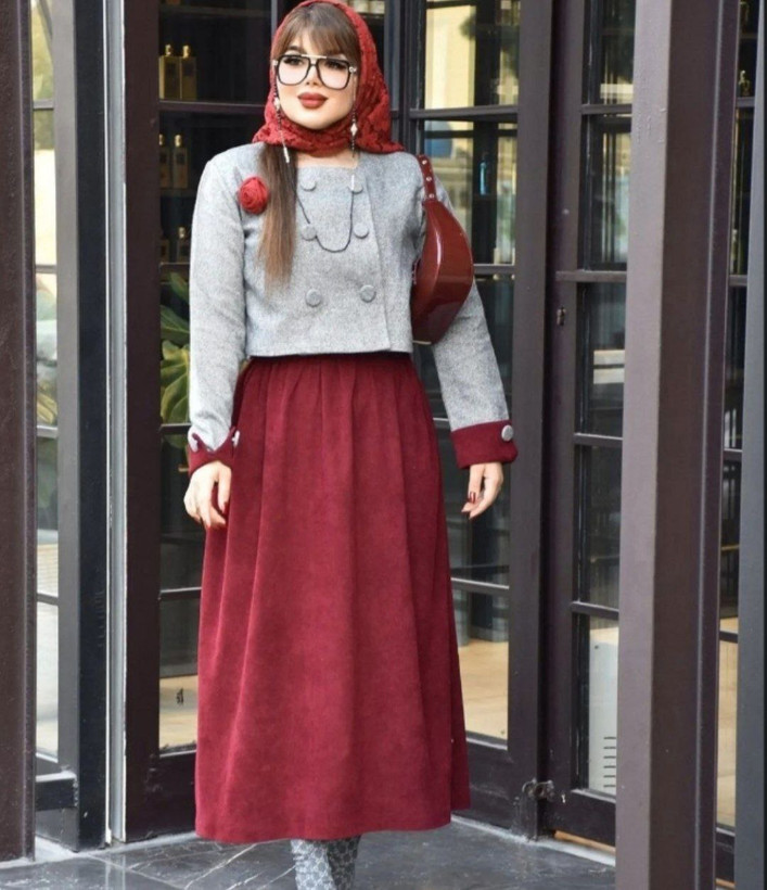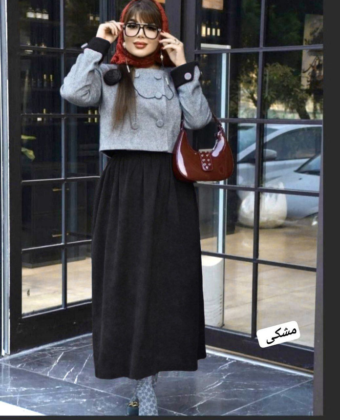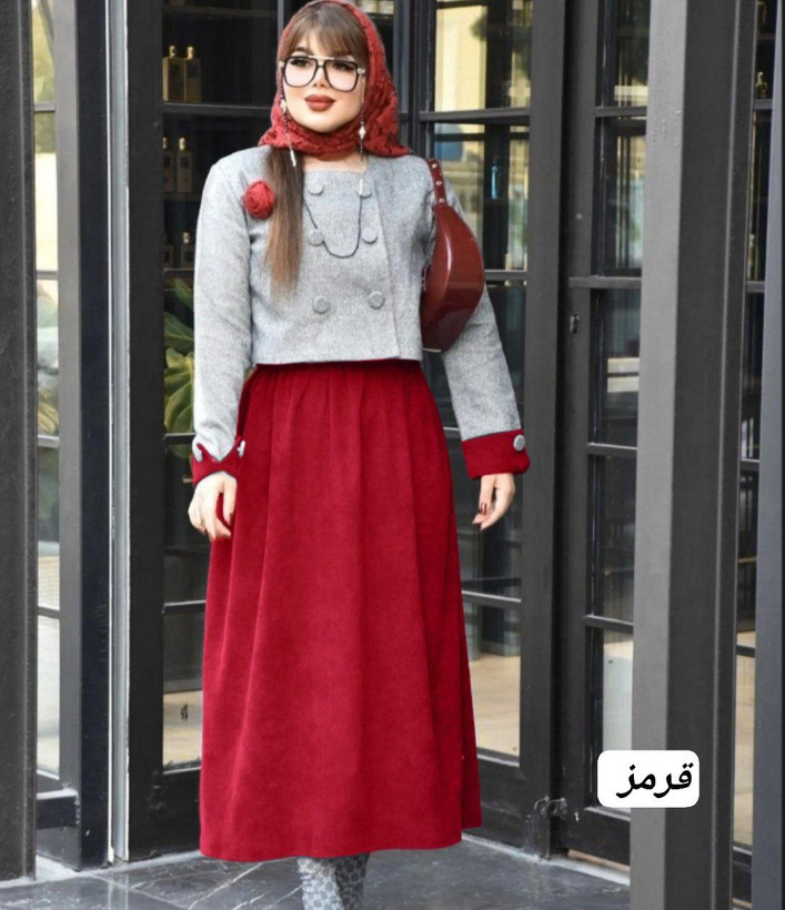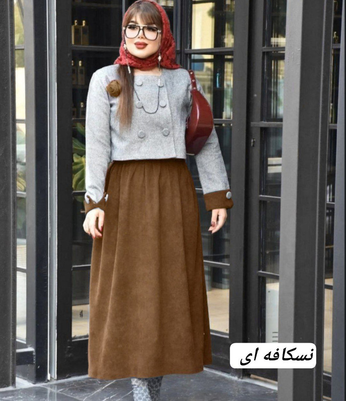 کت دامن زنانه مدل نغمه جنس کت فوتر جنس دامن مخمل کبریتی ریز ارسال رایگان
