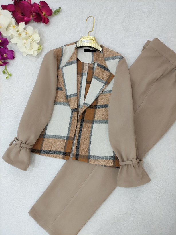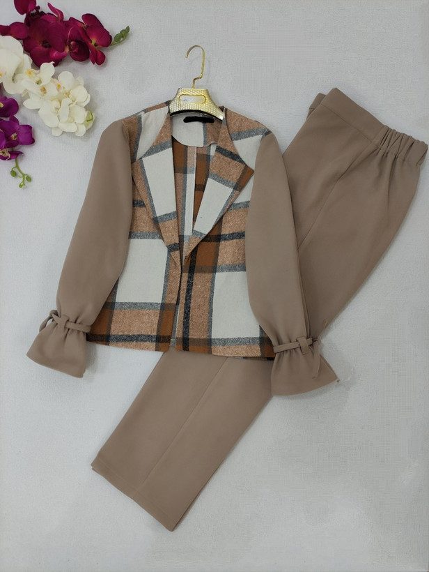 ست مانتوشلوار زنانه آناییل جنس فوترکوبیده شده چارخونه پشمی سایزبندی 38تا48