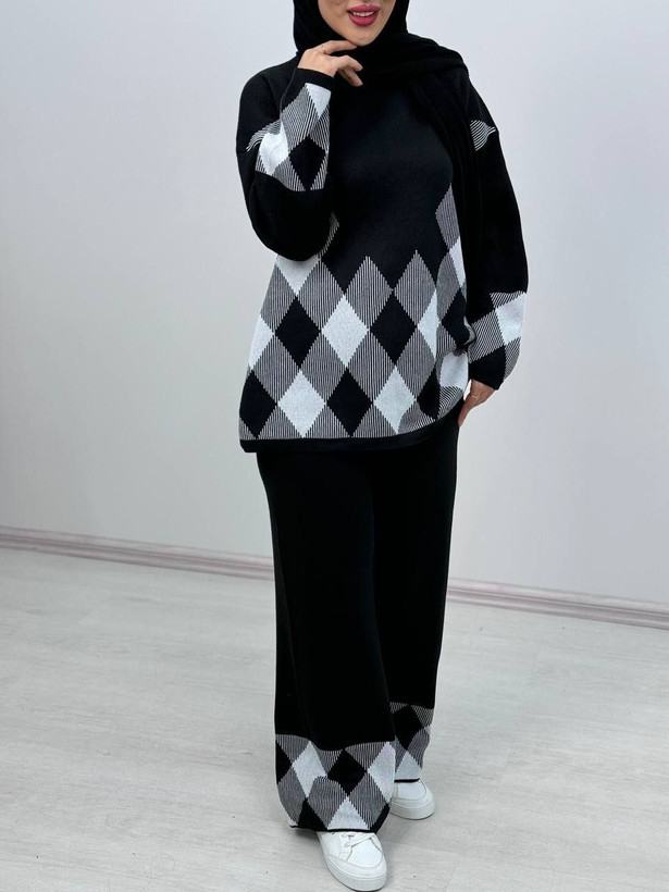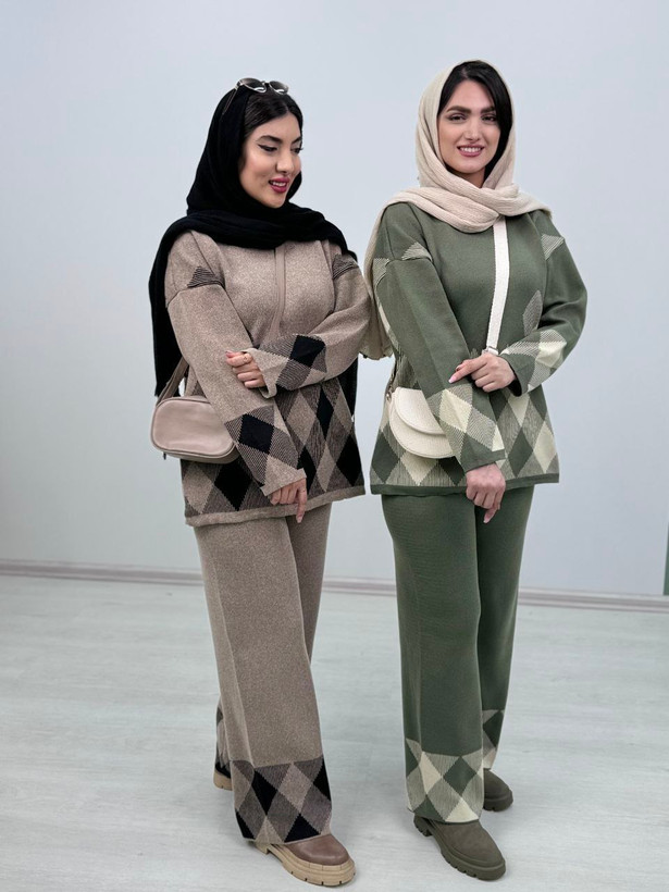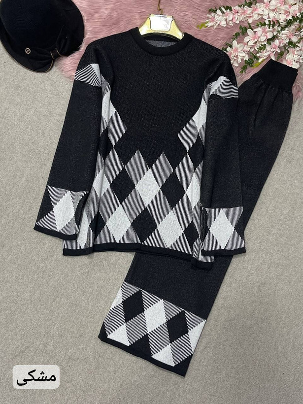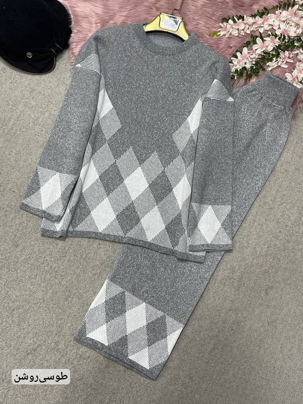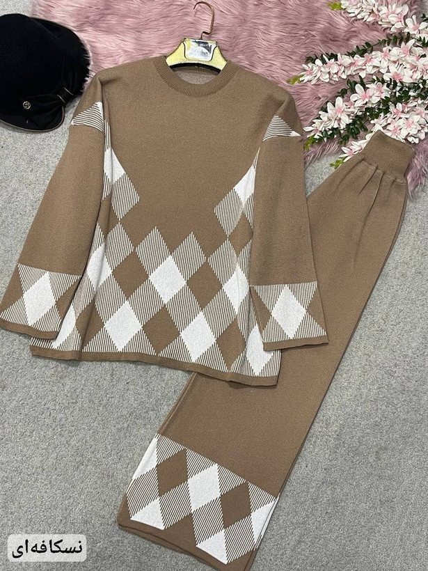 ست بافت تونیک شلوار مدل لوزی جنس نخ بافت اکرولیک ریزبافت ارسال رایگان