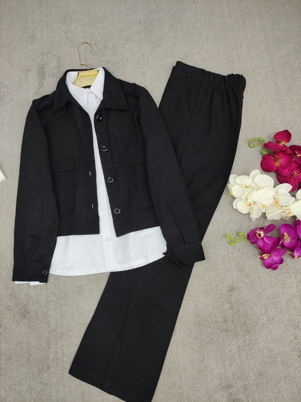 لباس ست سه تیکه دخترانه کت شلوار شومیزجنس لینن