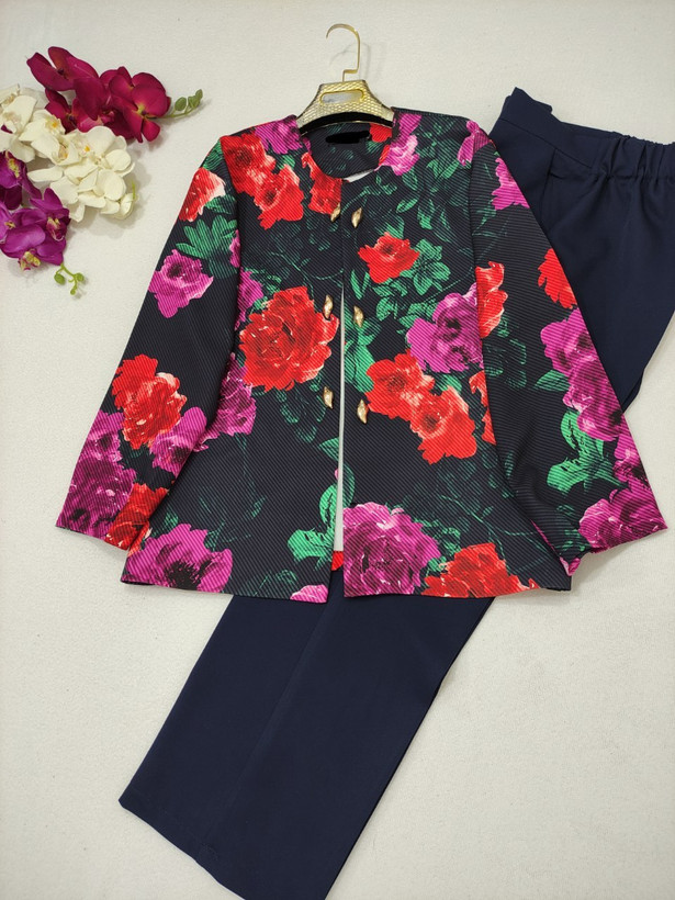 کت شلوار عیدانه زنانه مدل فلاور جنس مازراتی