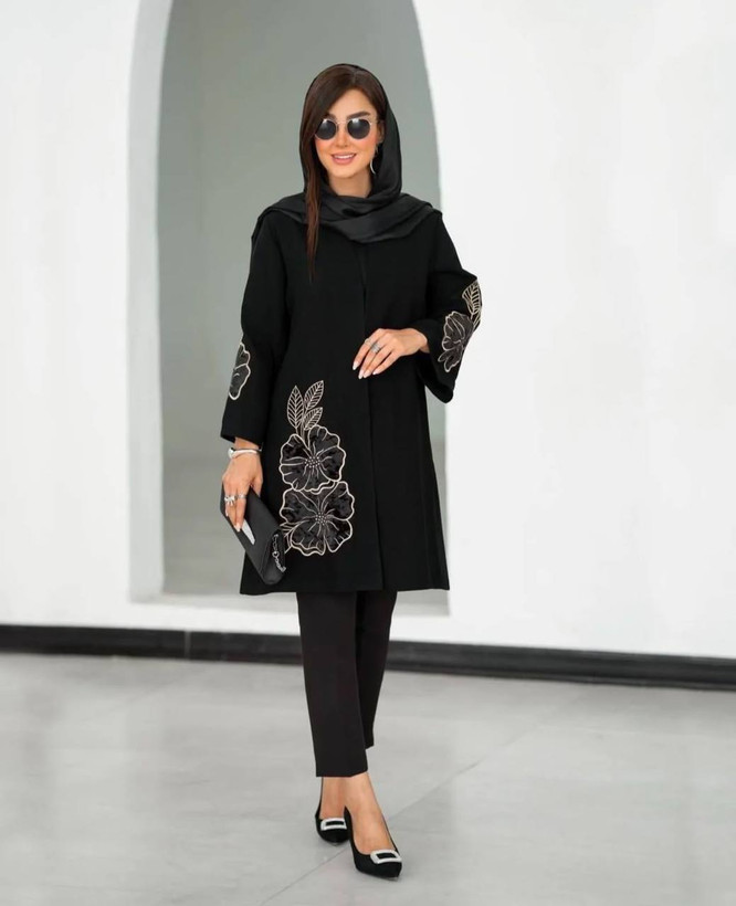 مانتو مزونی زنانه مدل گلرخ ویژه عید جنس مخمل شنل و گلدوزی