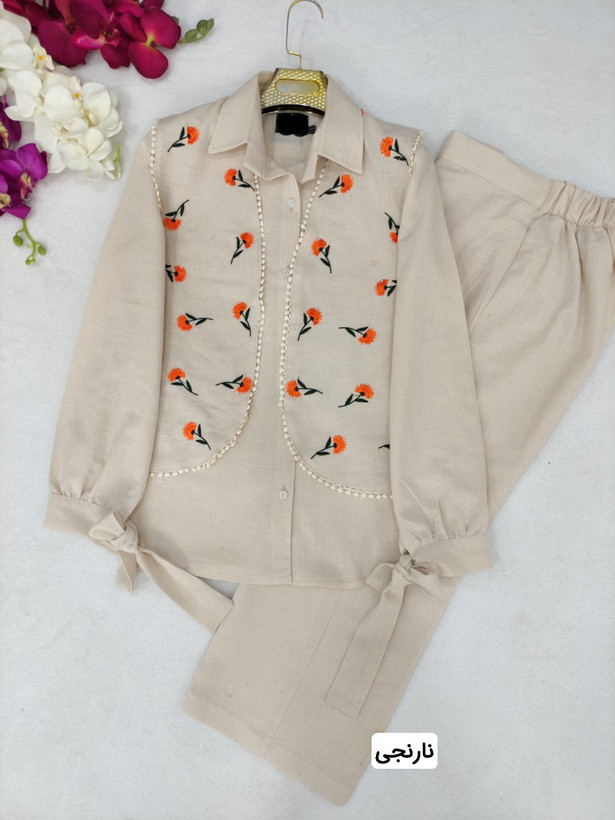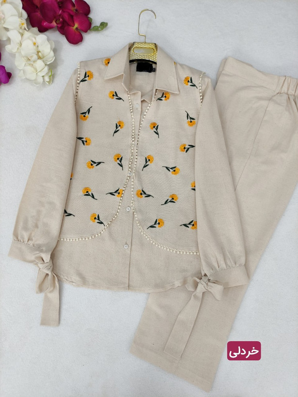 ست سه تیکه دخترانه لینن سایزبندی38تا48