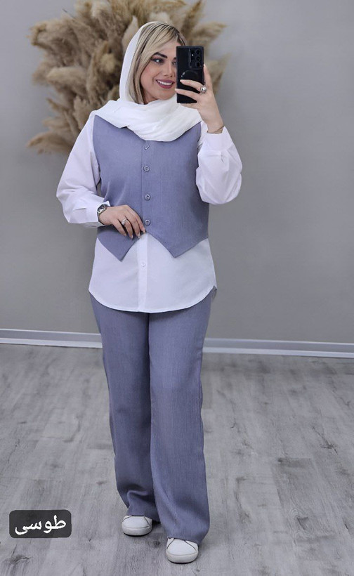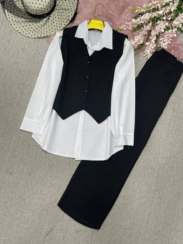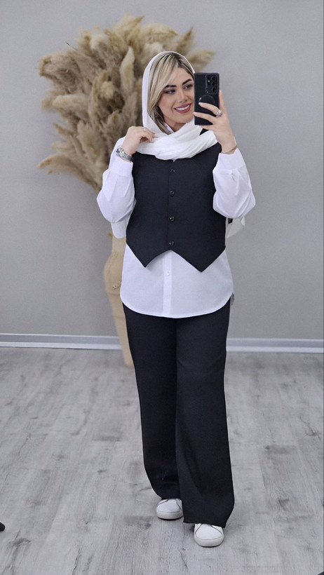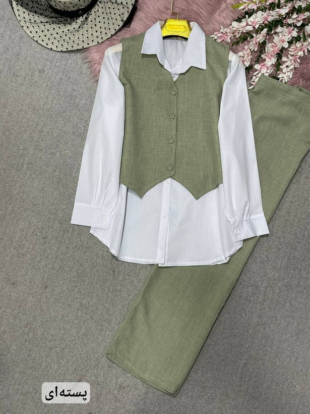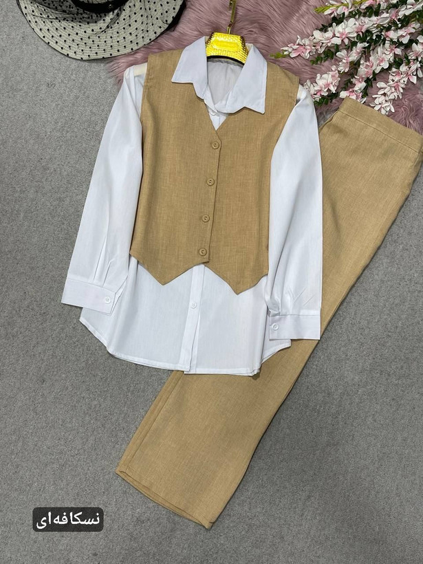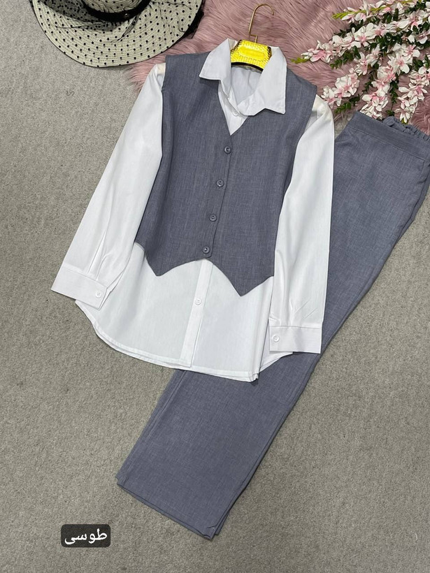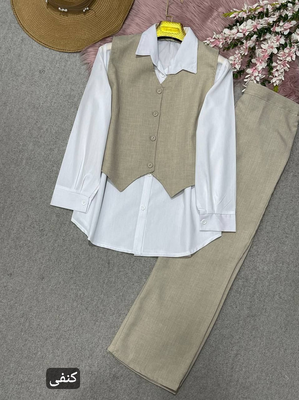 🛍نام : ست تیکه جلیقه+شومیز+شلوار🍃