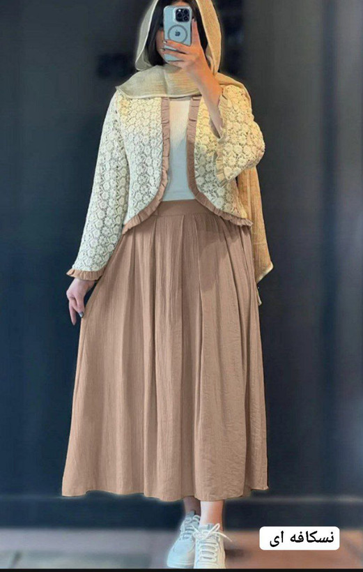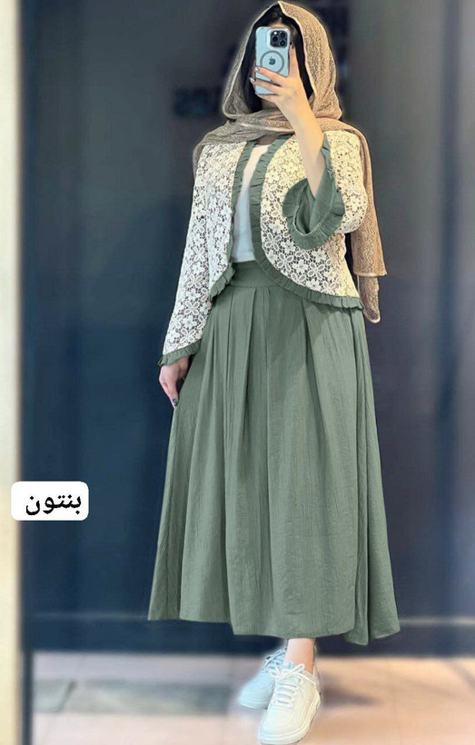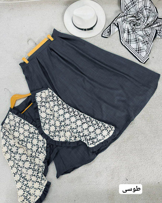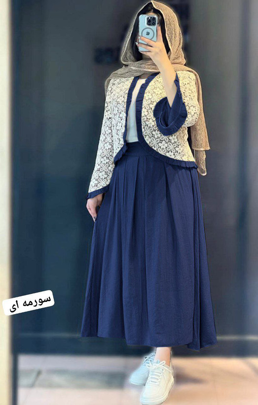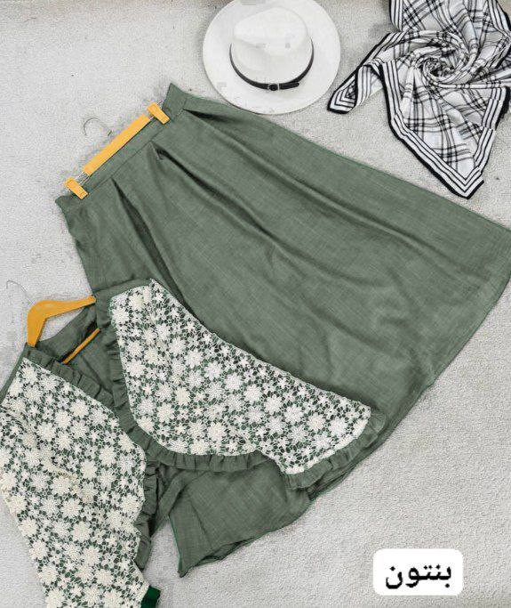 ست کت دامن زنانه مدل افسون ترند و پینترسی جنس شانتون و گیپور اصل ویژه عید