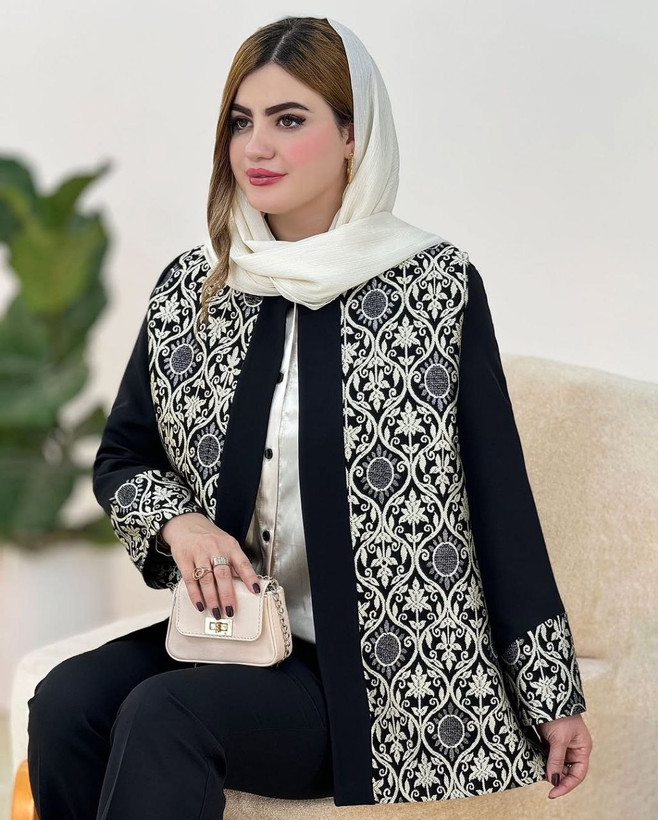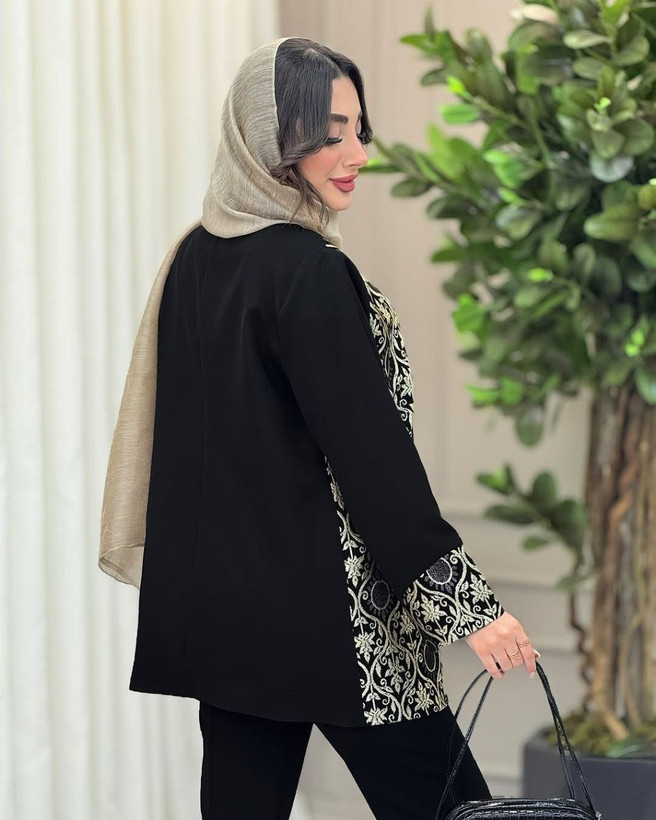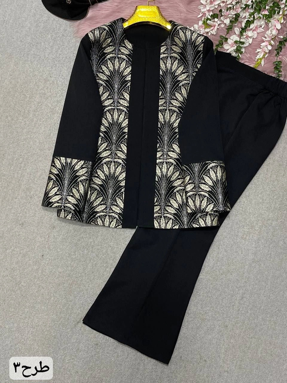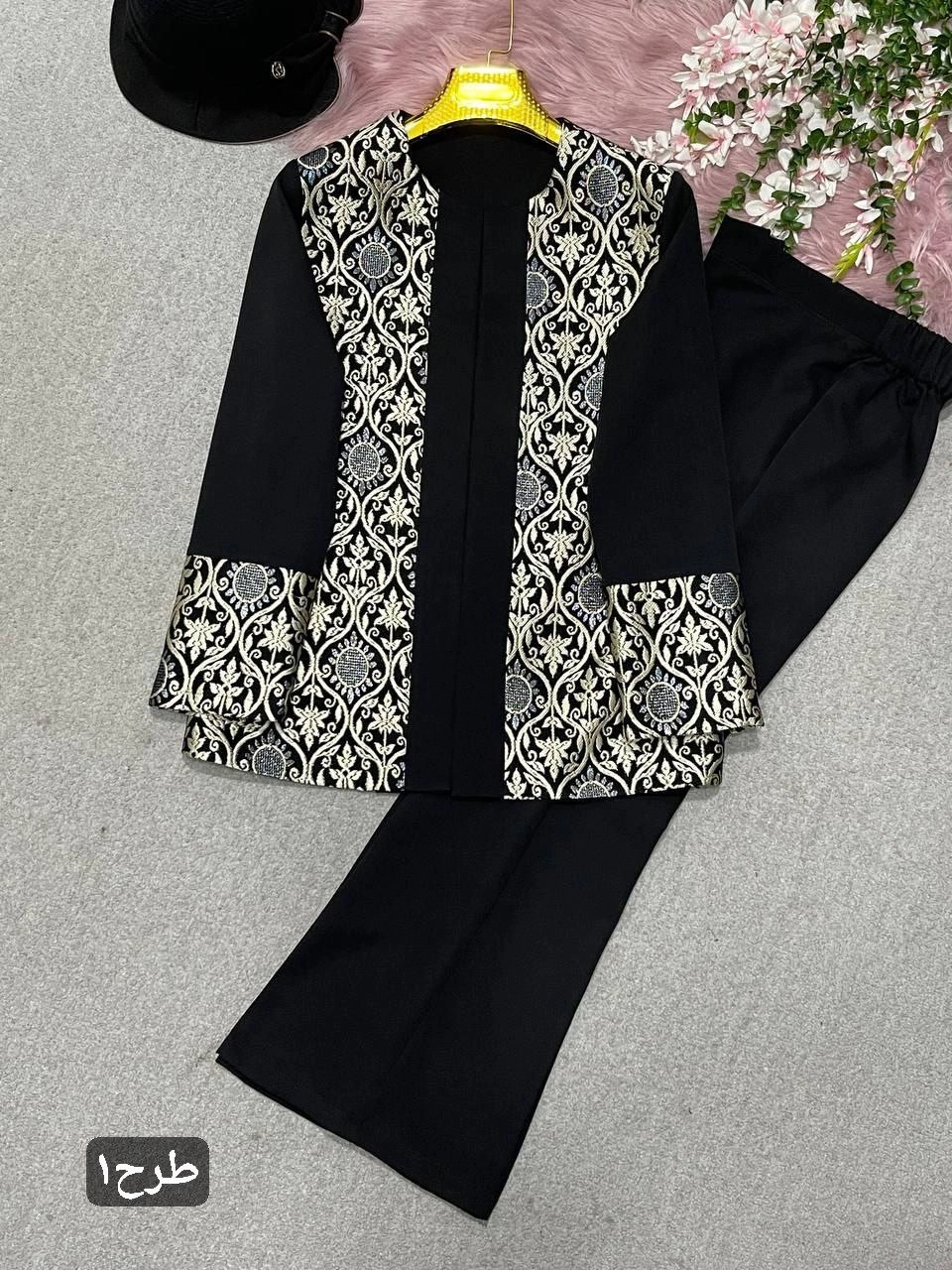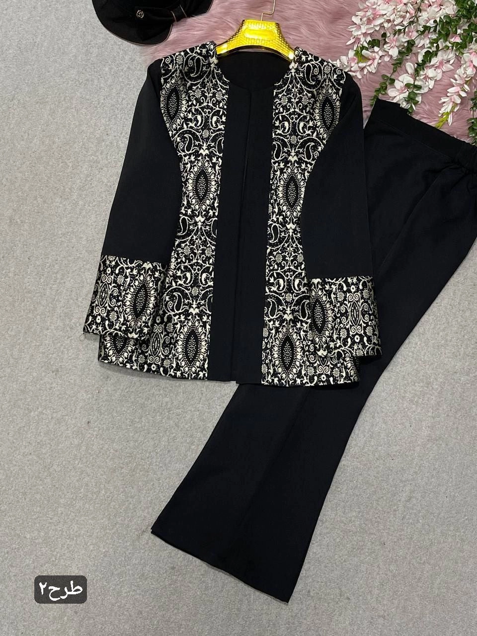 ست کت شلوار زنانه مدل ملورین جنس کرپ مازراتی و خرجکار تافته لمه لایی کوبی شده