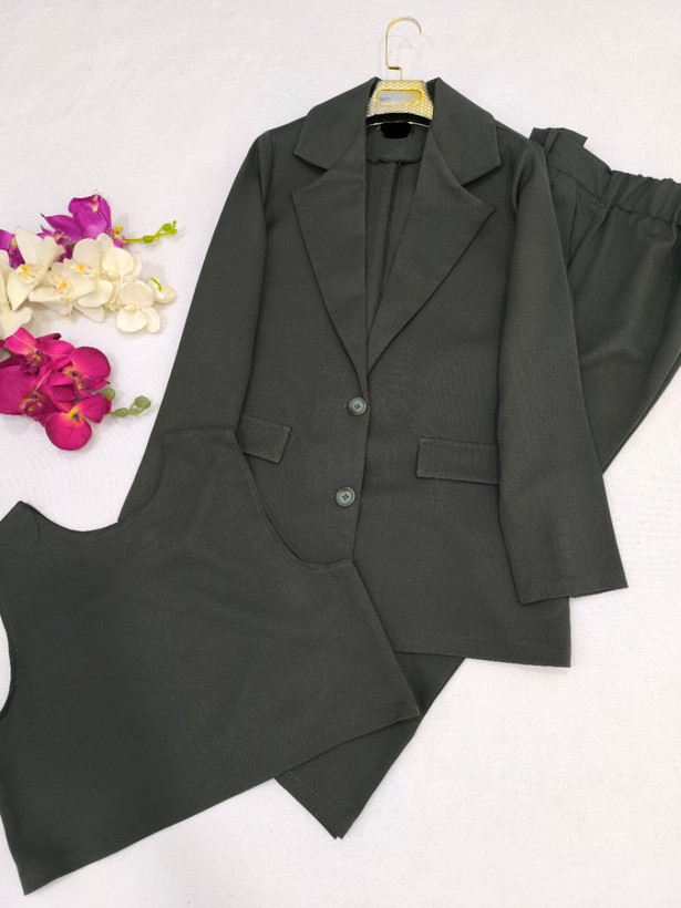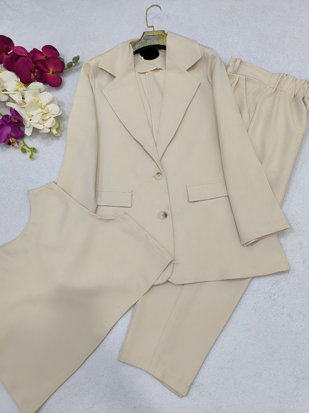 ست سه تیکه کراپ کتشلوار زنانه مدل ماهشید جنس مازراتی