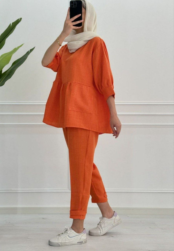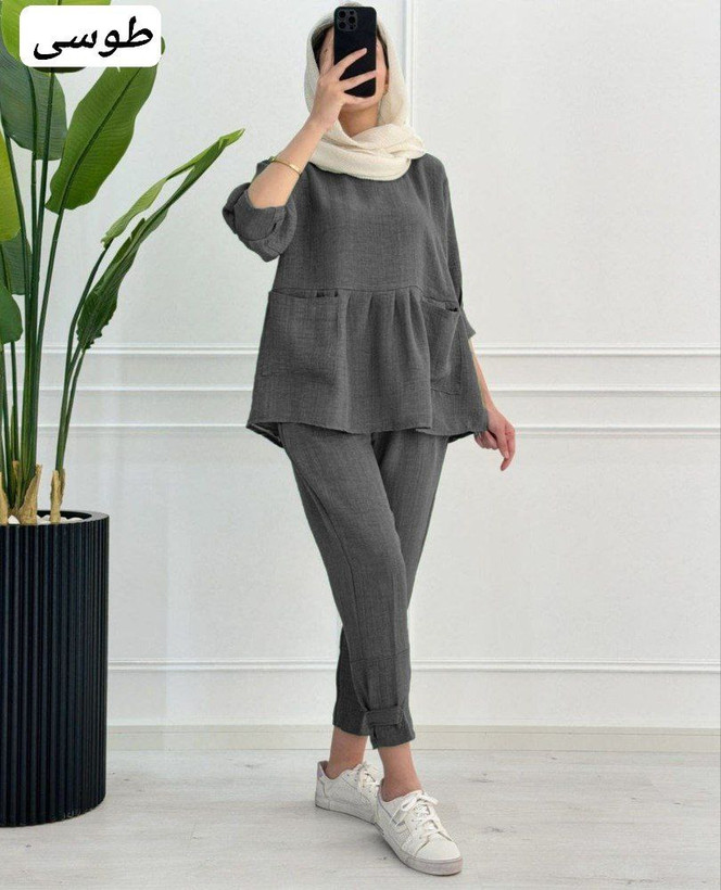 مانتو شلوار ست عروسکی دخترانه فری سایز