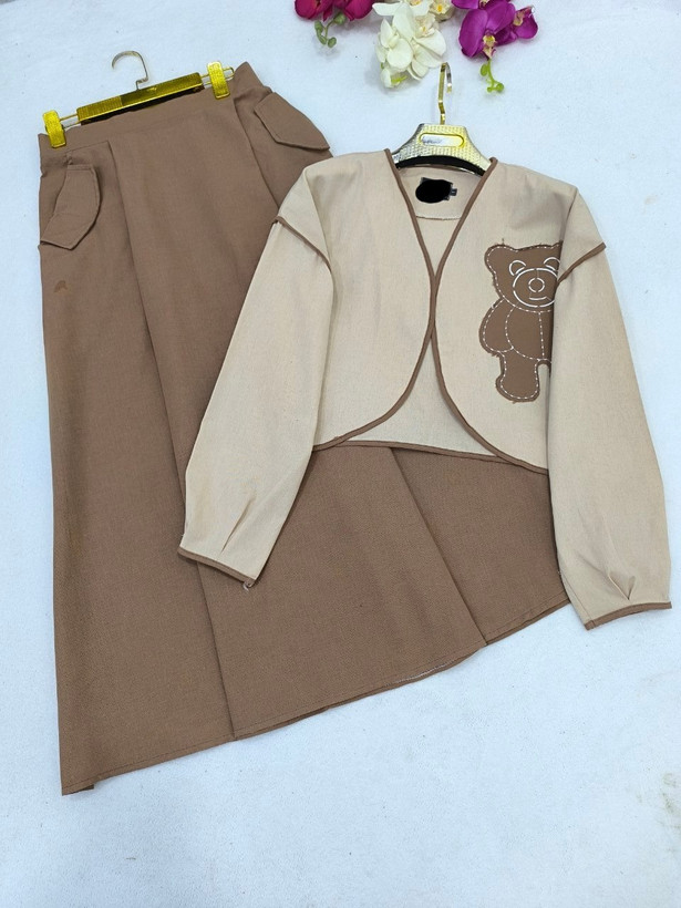 کت دامن زنانه خنک مدل خرسی جنس لنین درجه یک سایزبندی 38 تا 48