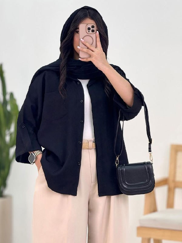 پشت شومیز دکمه نما و تزئینی دارد ✅