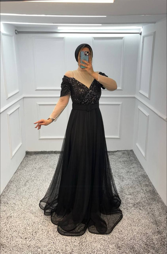 ماکسی بلند زنانه مدل نازیلا کد 1جنس پولک زارا و تور نوار دبی سایزبندی 38 تا 50