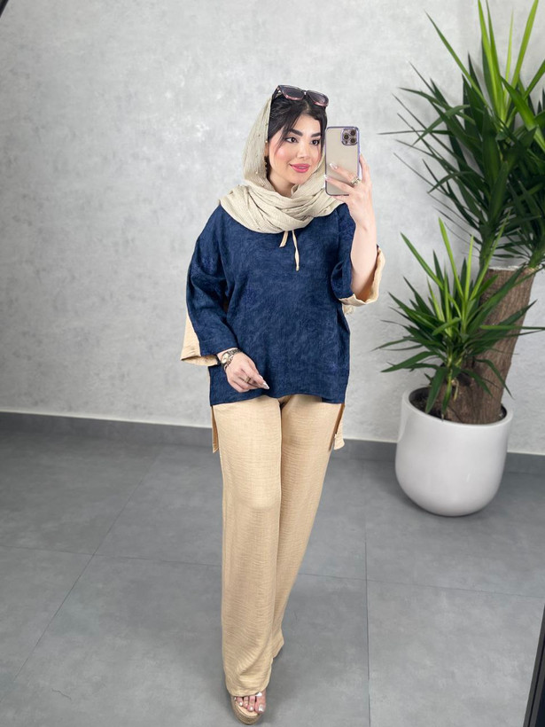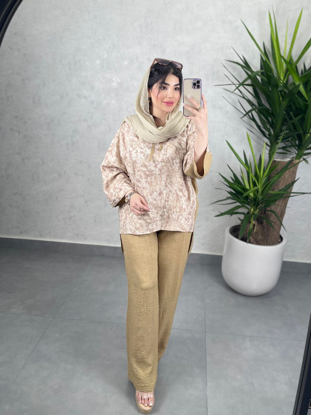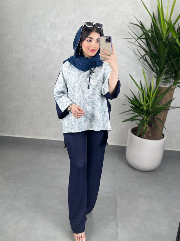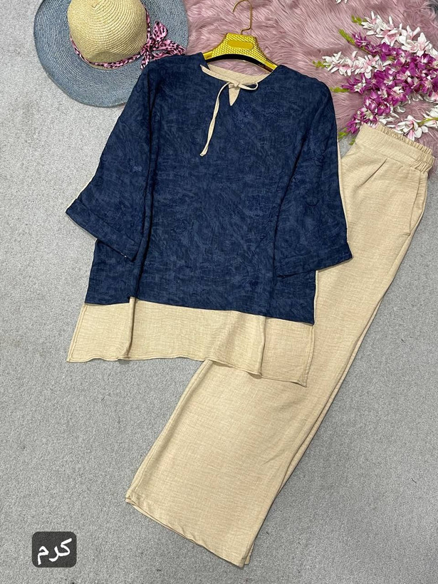 تونیک شلوار زنانه مدل دریا جنس شانتون سایزبندی فری سایز 38تا46