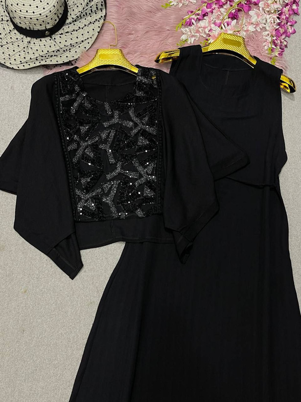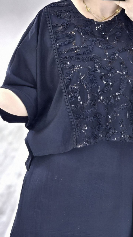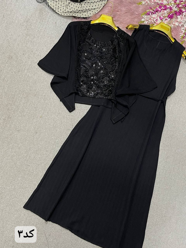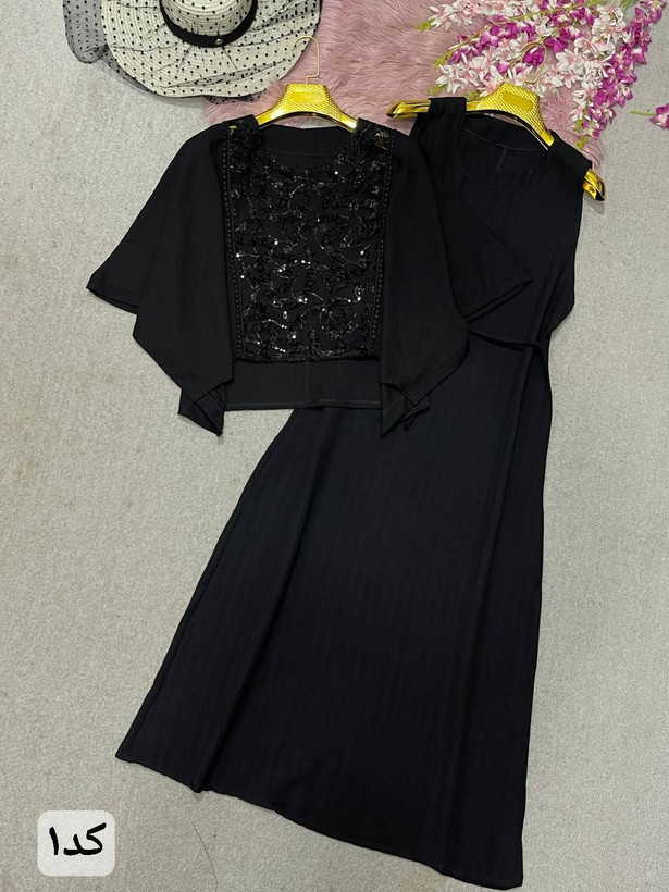 ست مجلسی کت سارافون زنانه مدل فهیم جنس کرپ نخ با خرجکار پولک دوزی