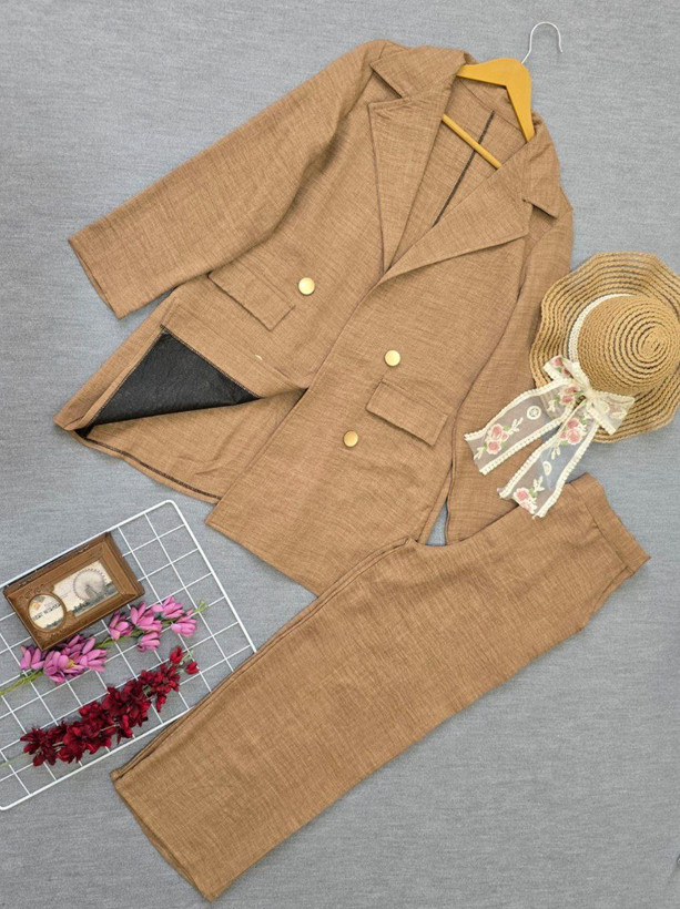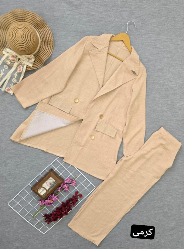 این ست جذاب شامل یک کت شلوار از جنس شانتون از پارچه شانتون هست که برای فصل بهار و تابستان خیلی مناسبه پارچه شانتون ظاهری و هم راحتی داره خلاصه یه ست کاربردی ودر عین حال شیکه