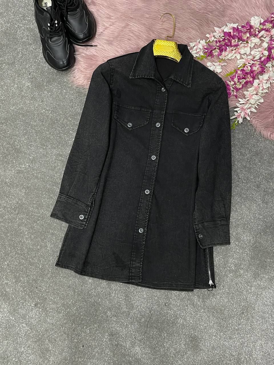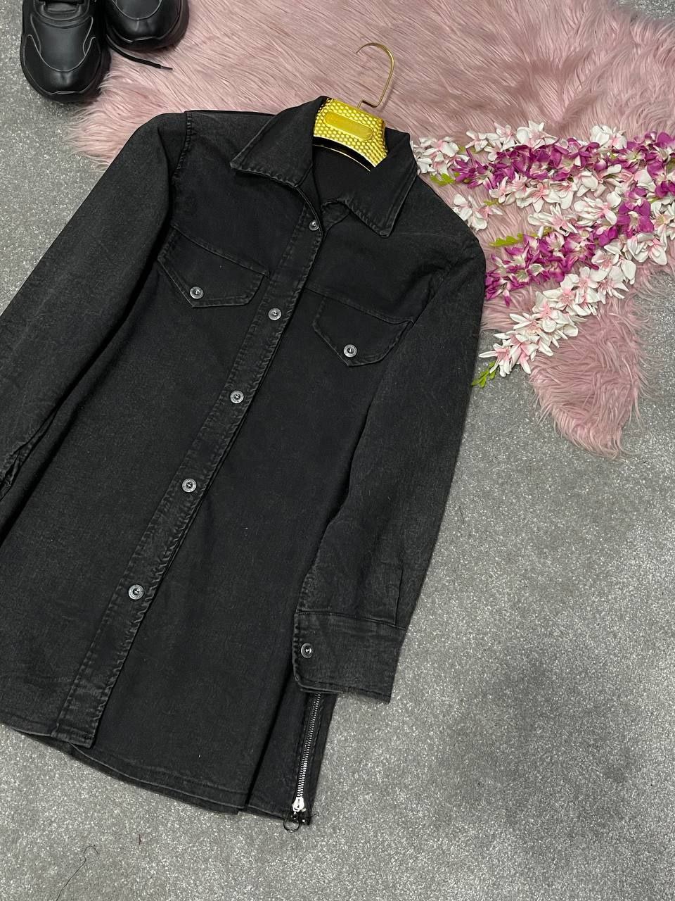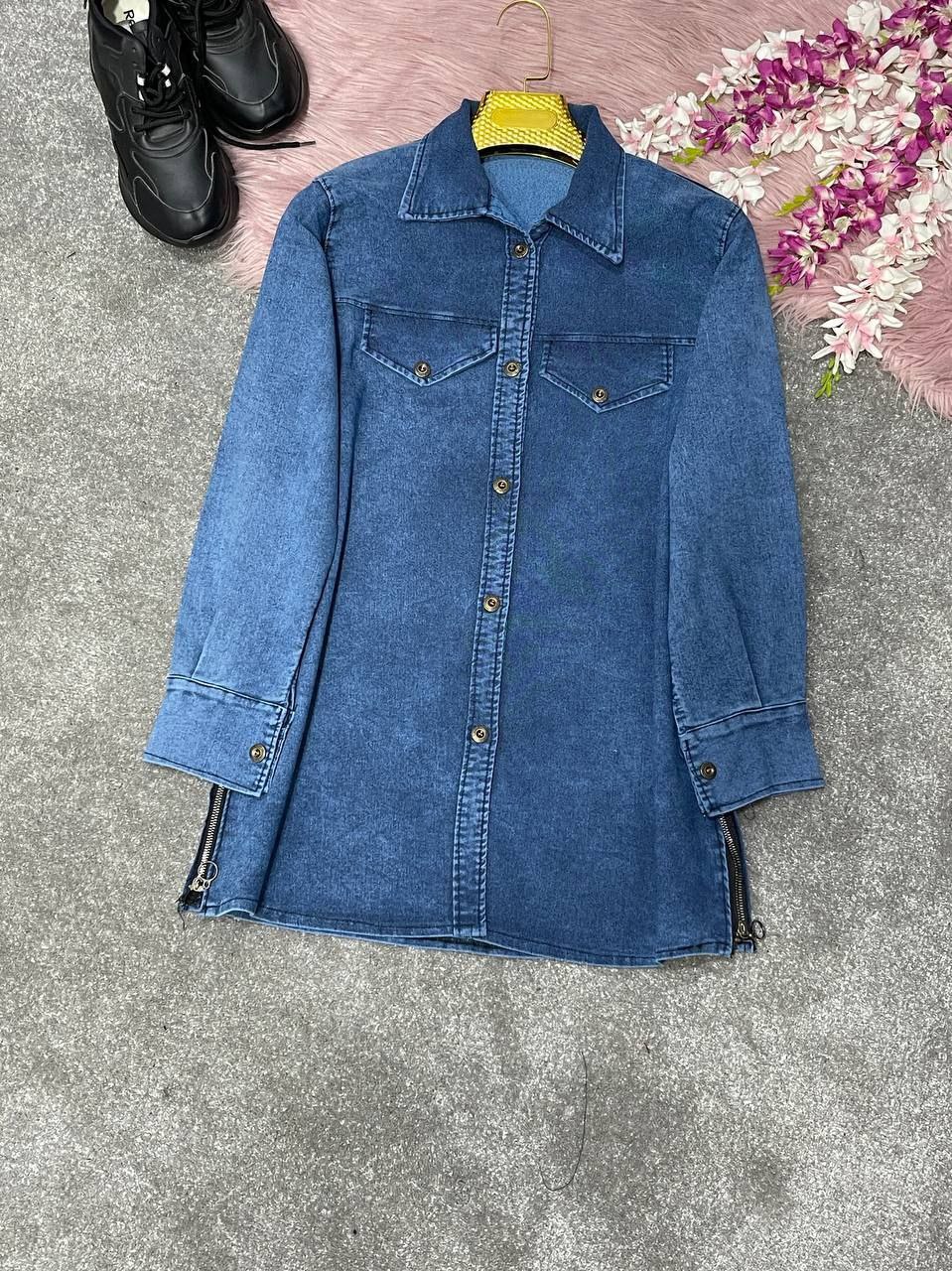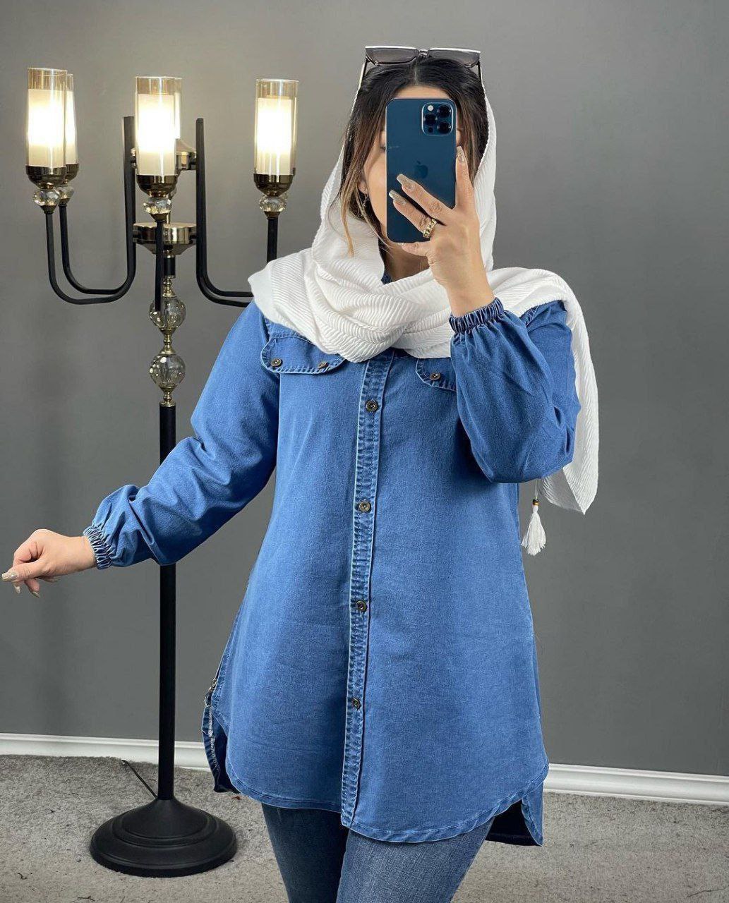 مانتو بغل زیپ زنانه جنس جین کاغذی گرم بالا