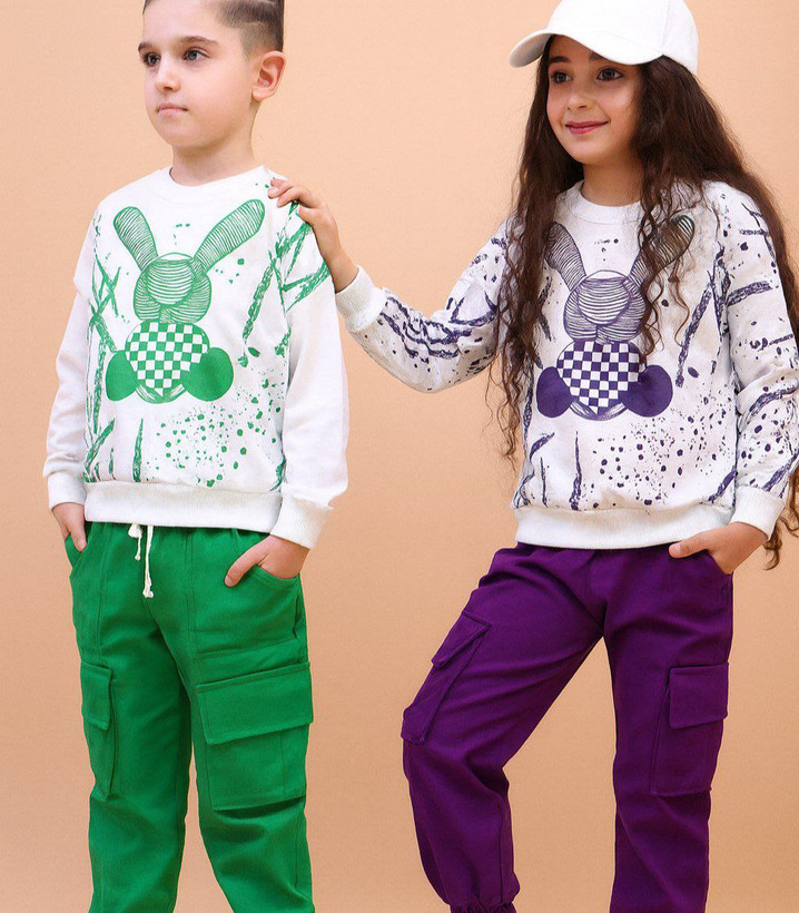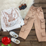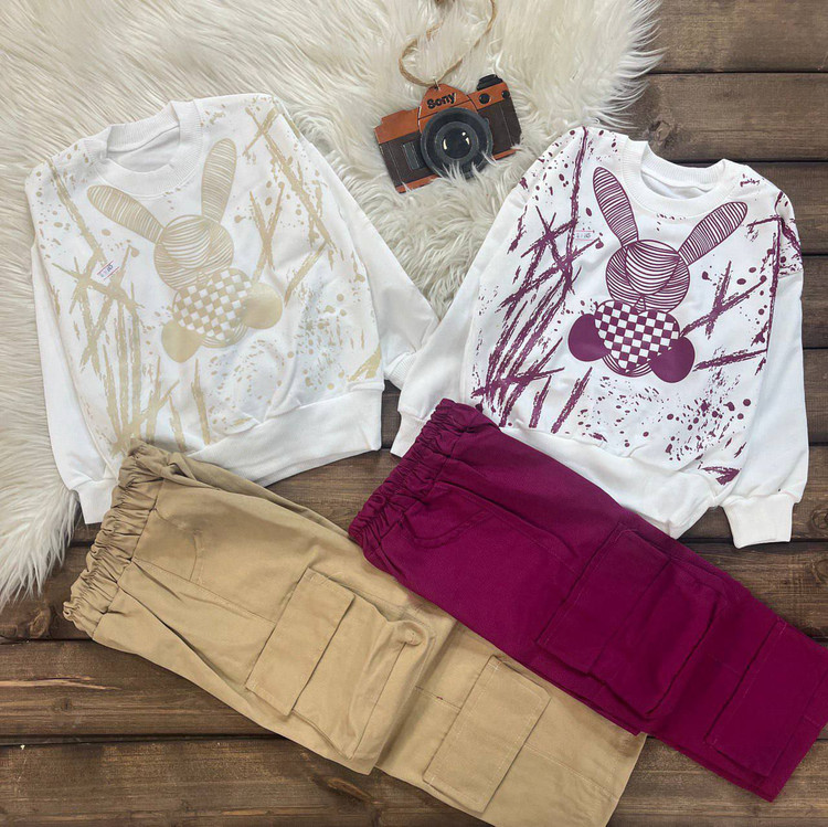 بلوز شلوار دخترانه خرگوش جنس بلوز دورس پنبه و شلوار لاکرا کتان کارگو