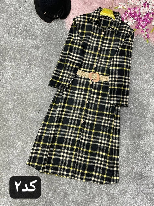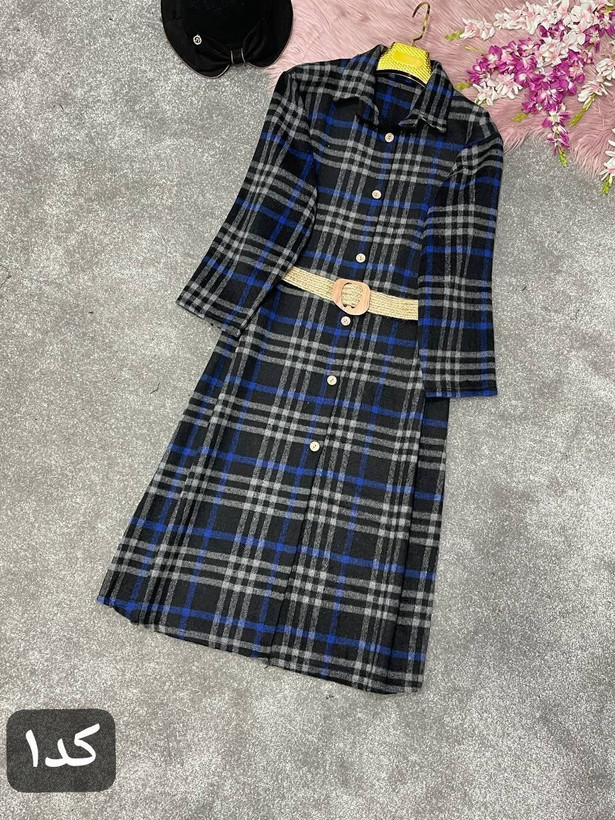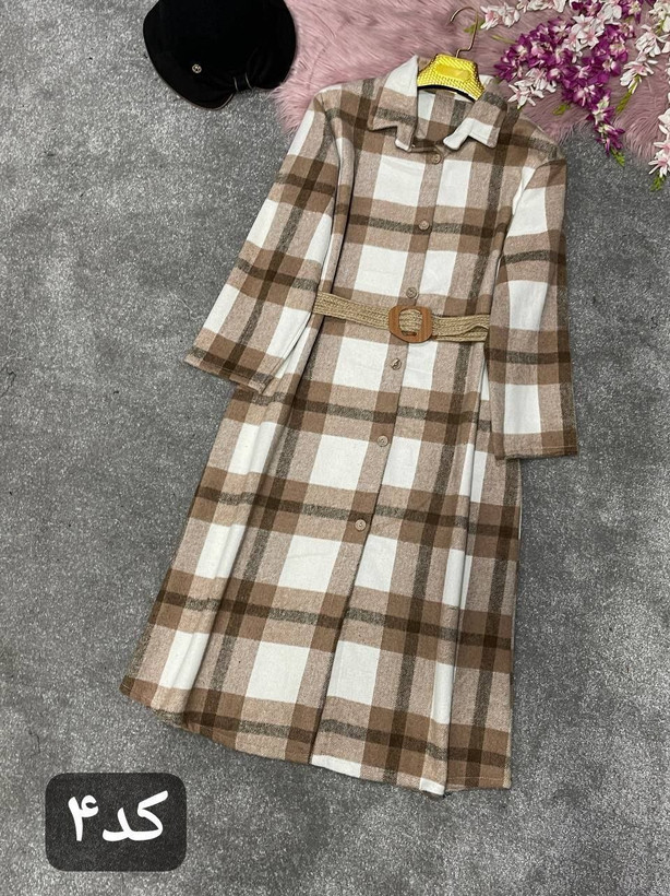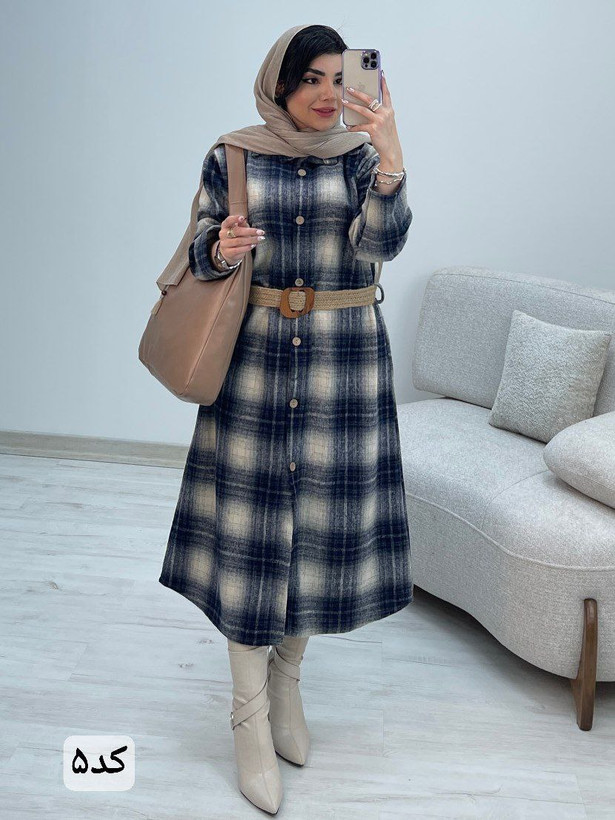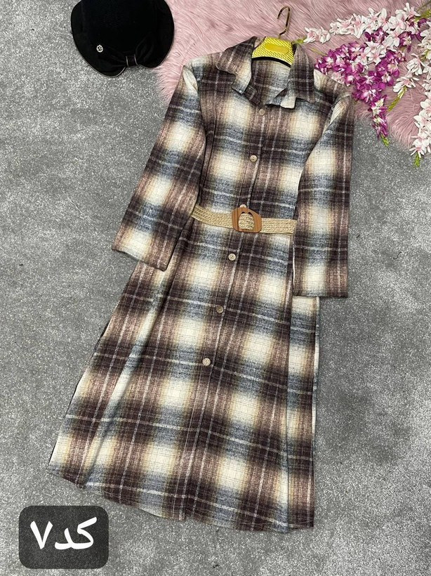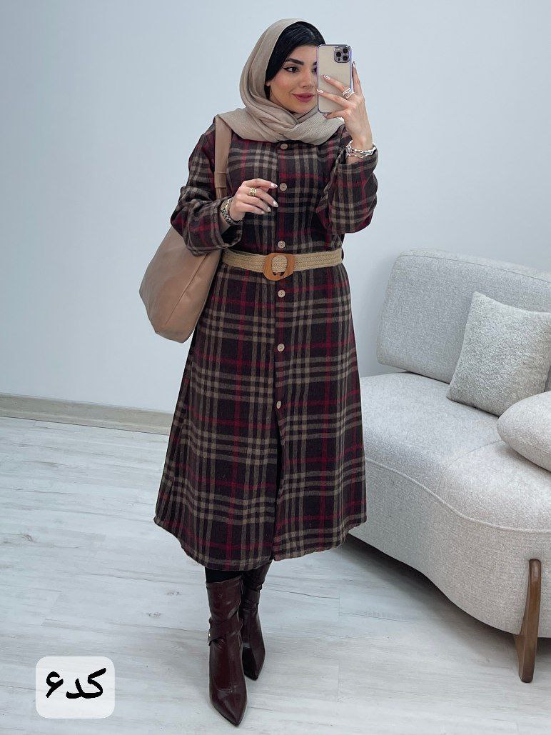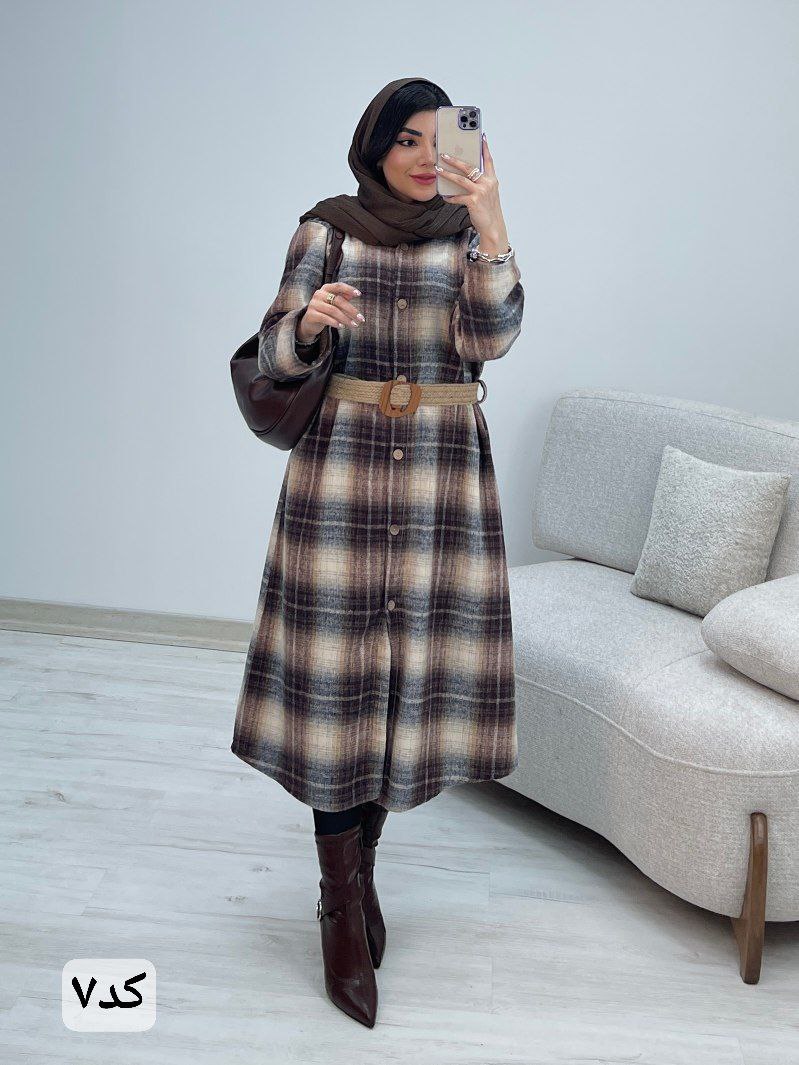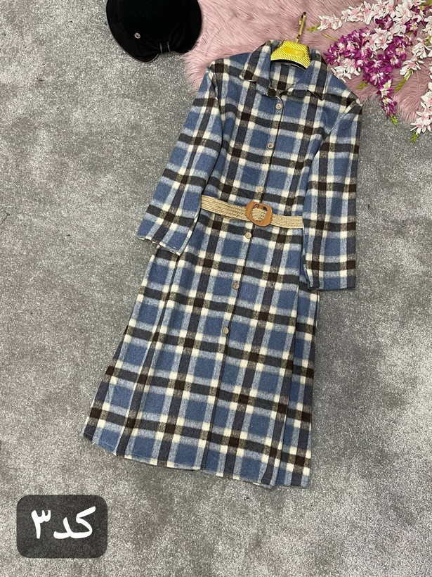 کفتان بلند پشمی زنانه مدل سارا همراه با کمربند جنس موهر پشمی