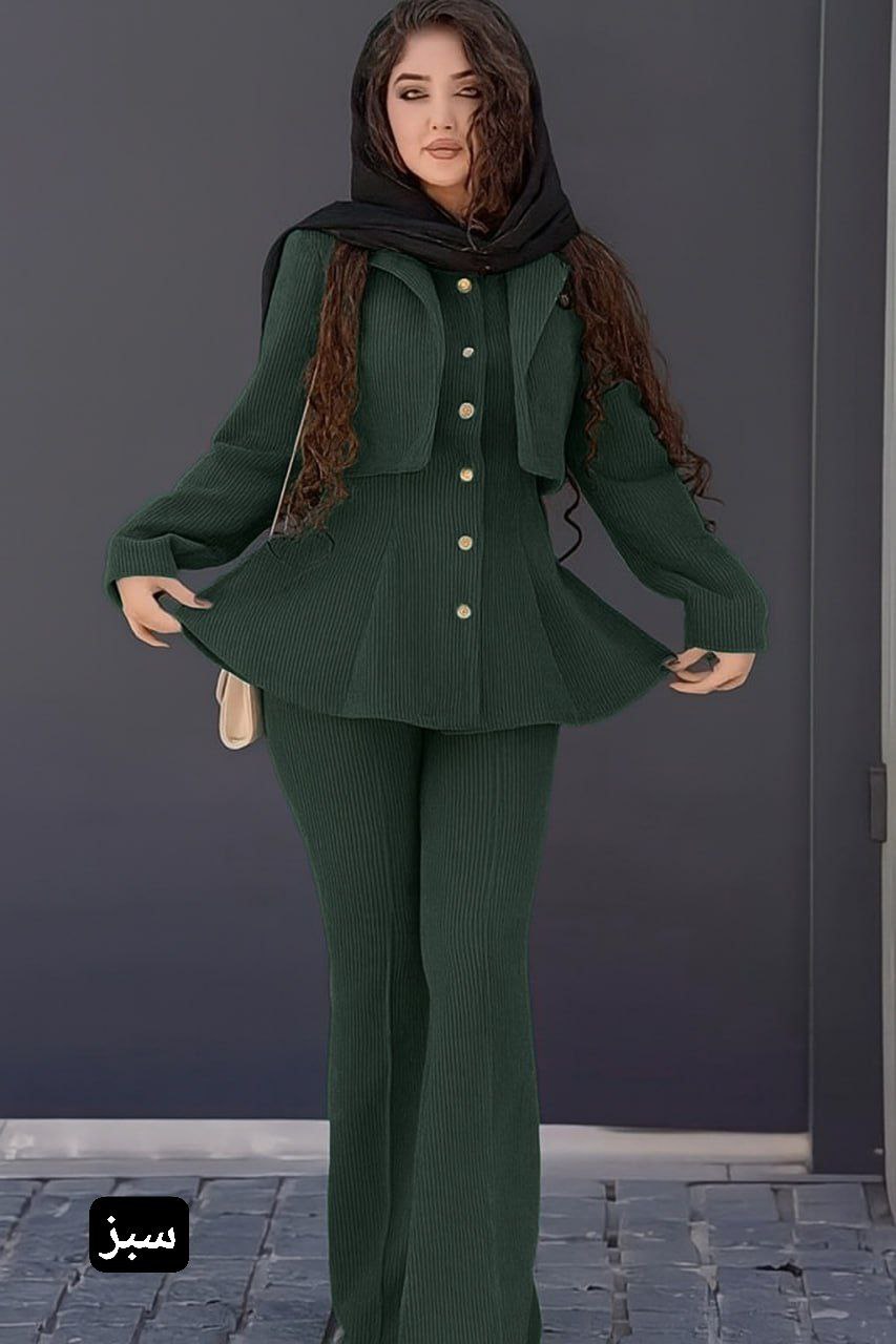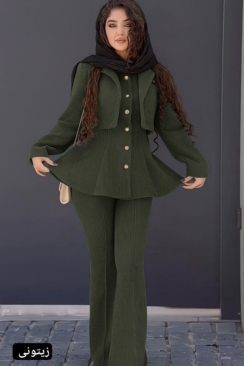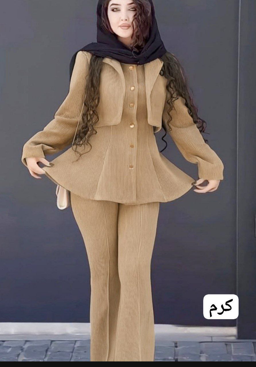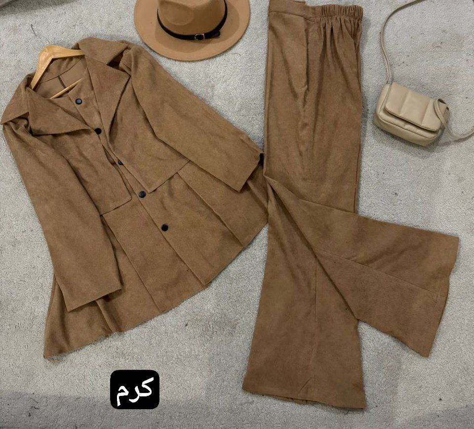 ست مانتو شلوار زنانه مدل آذین جنس مخمل کبریتی