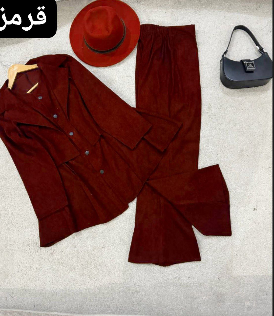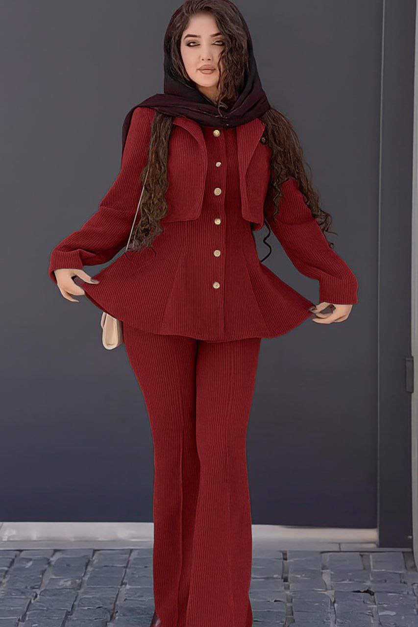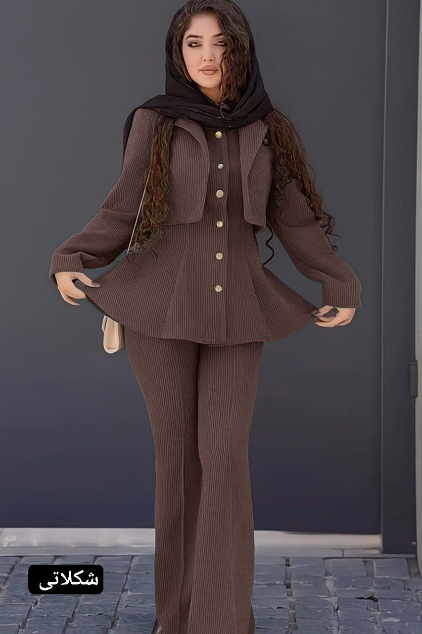 ست مانتو شلوار زنانه مدل آذین جنس مخمل کبریتی
