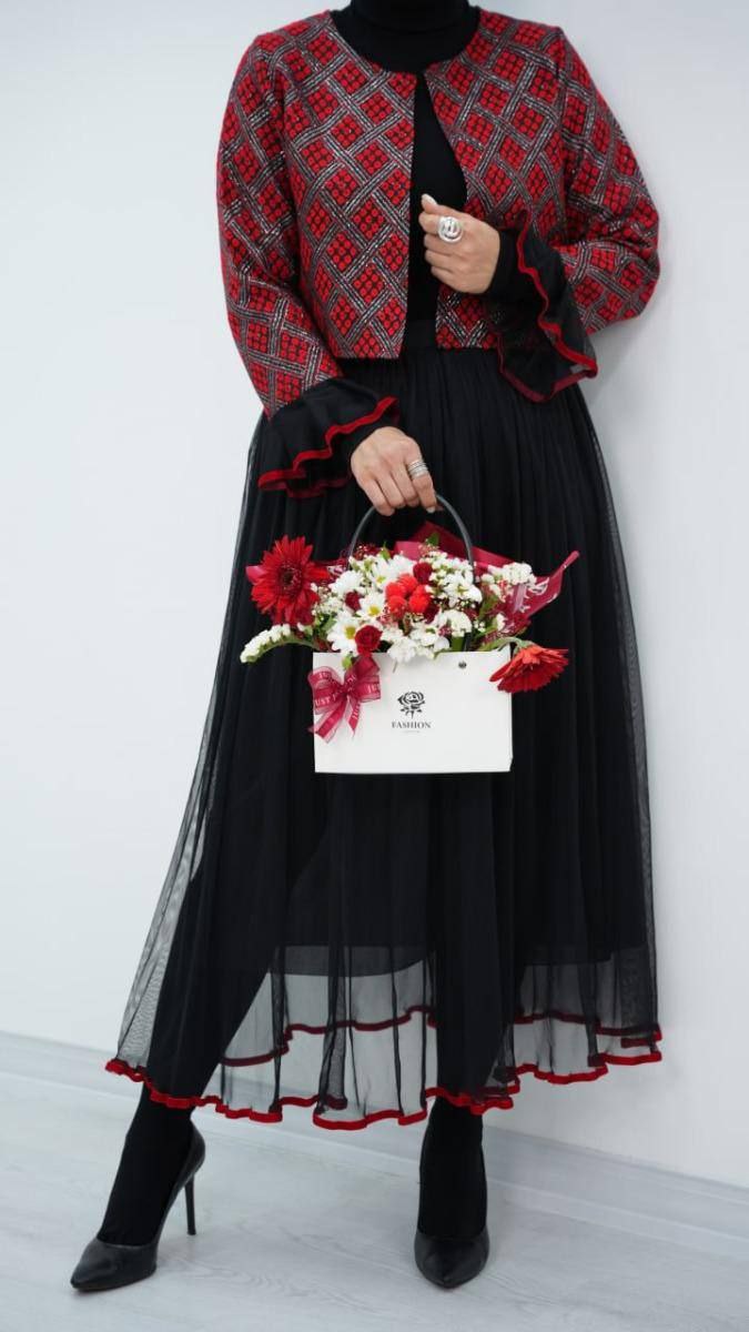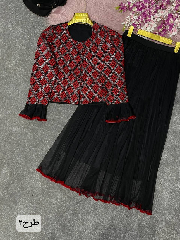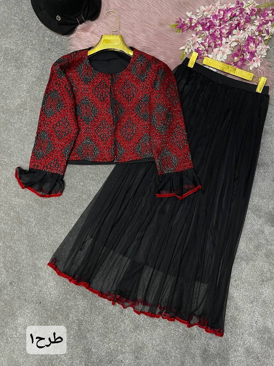 ست کت دامن یلدایی زنانه جنس تافته و تور