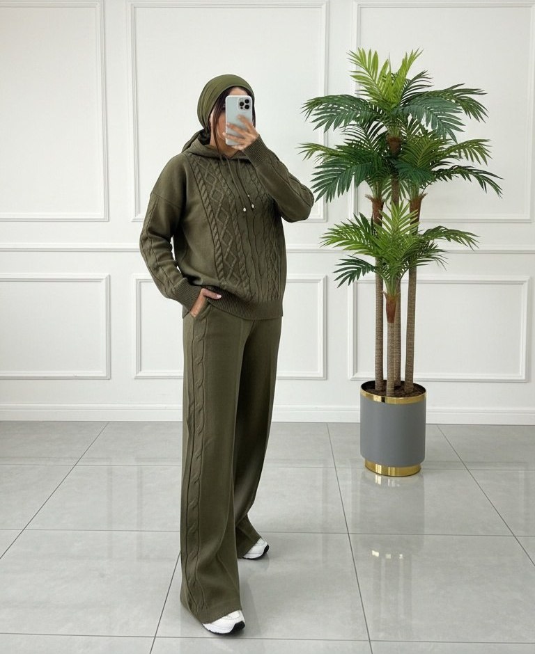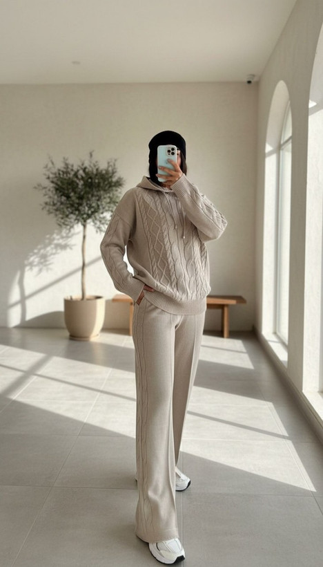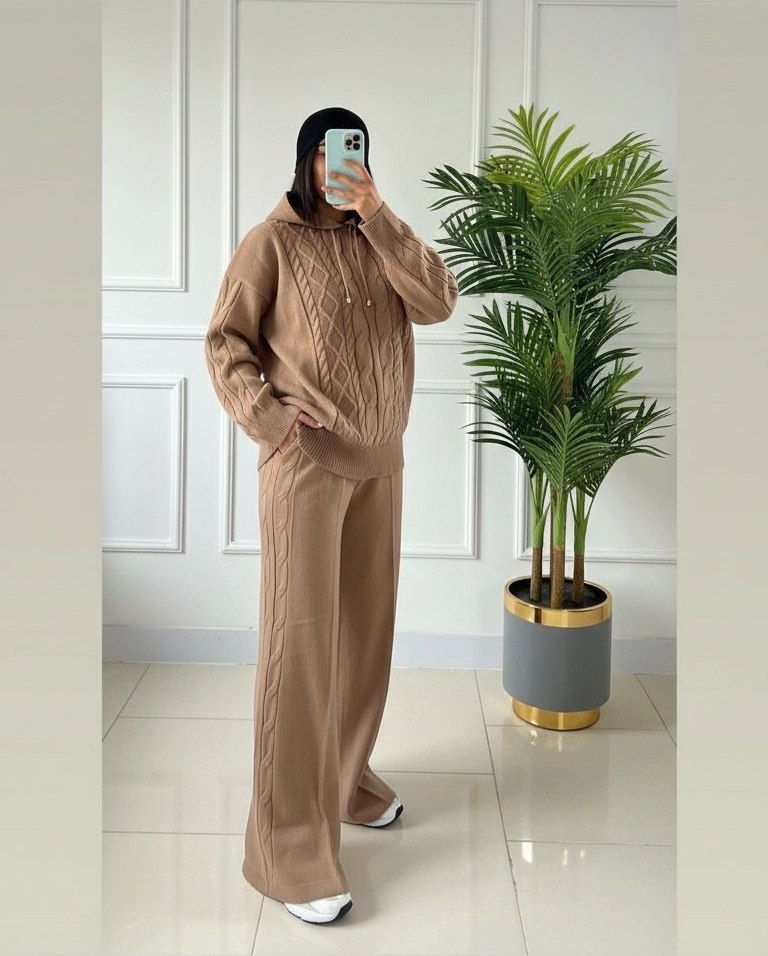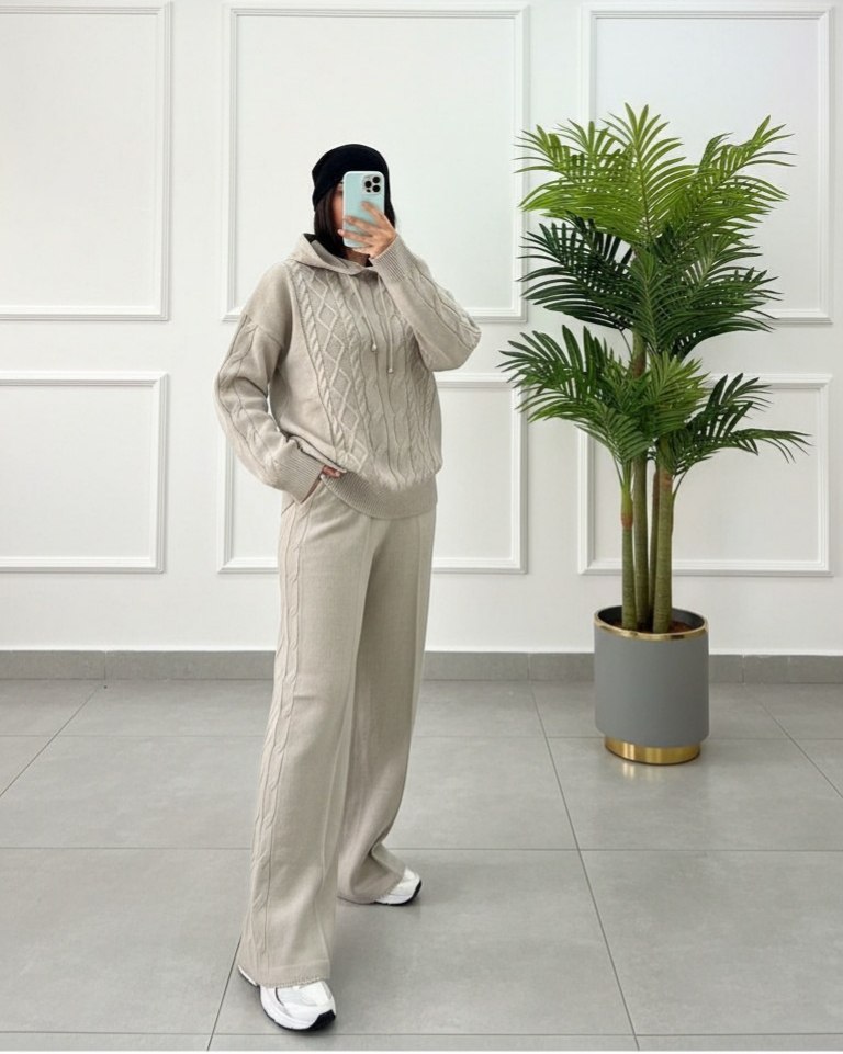 ست هودی شلوار بافت زنانه مدل آران جنس بافت