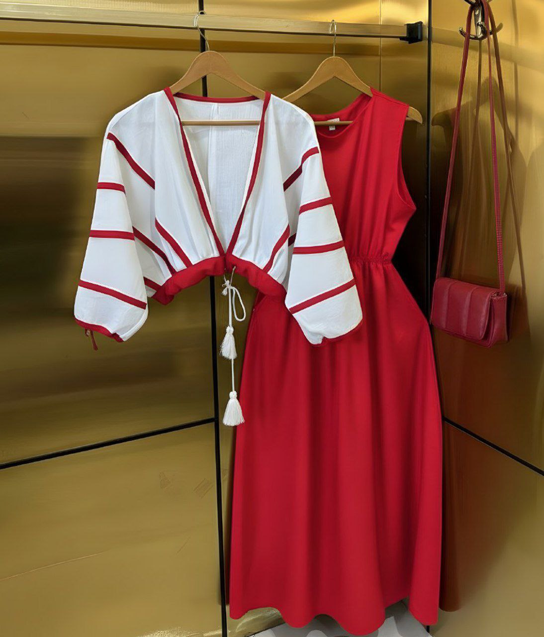 شامل سارافون بلند و کت کوتاه، مناسب تیپهای زمستانی مجلسی