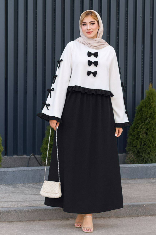 طراحی پاپیوندار با استایل رسمی و زنانه – شبیه مدلهای ژورنالی و خاص.