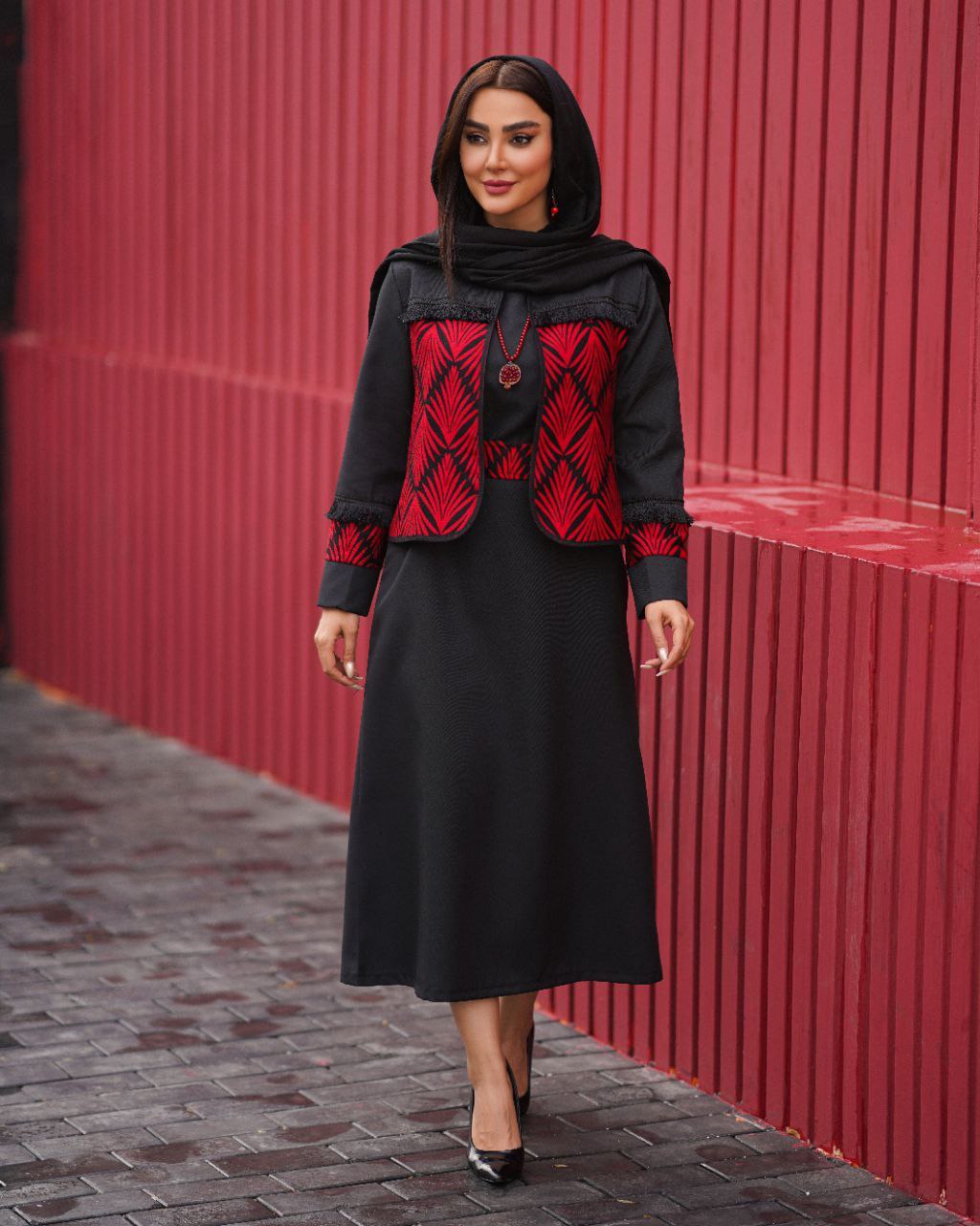 ست سه تیکه یلدایی زنانه مدل نارون کت +سارافون +کمربمد جنس تافته و پرشیا