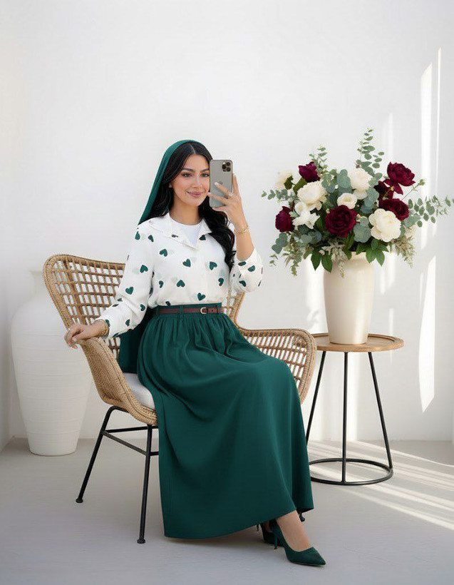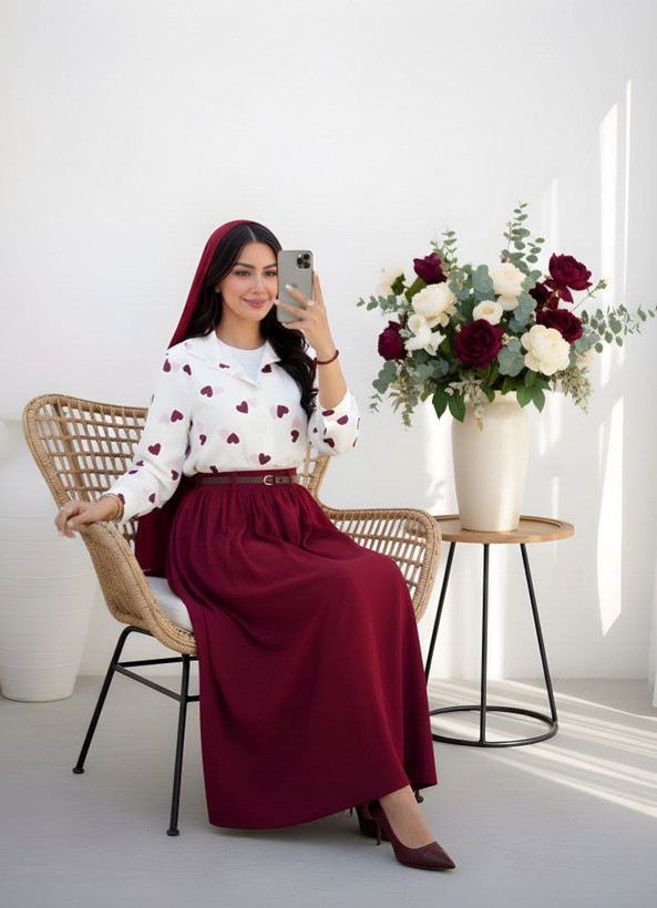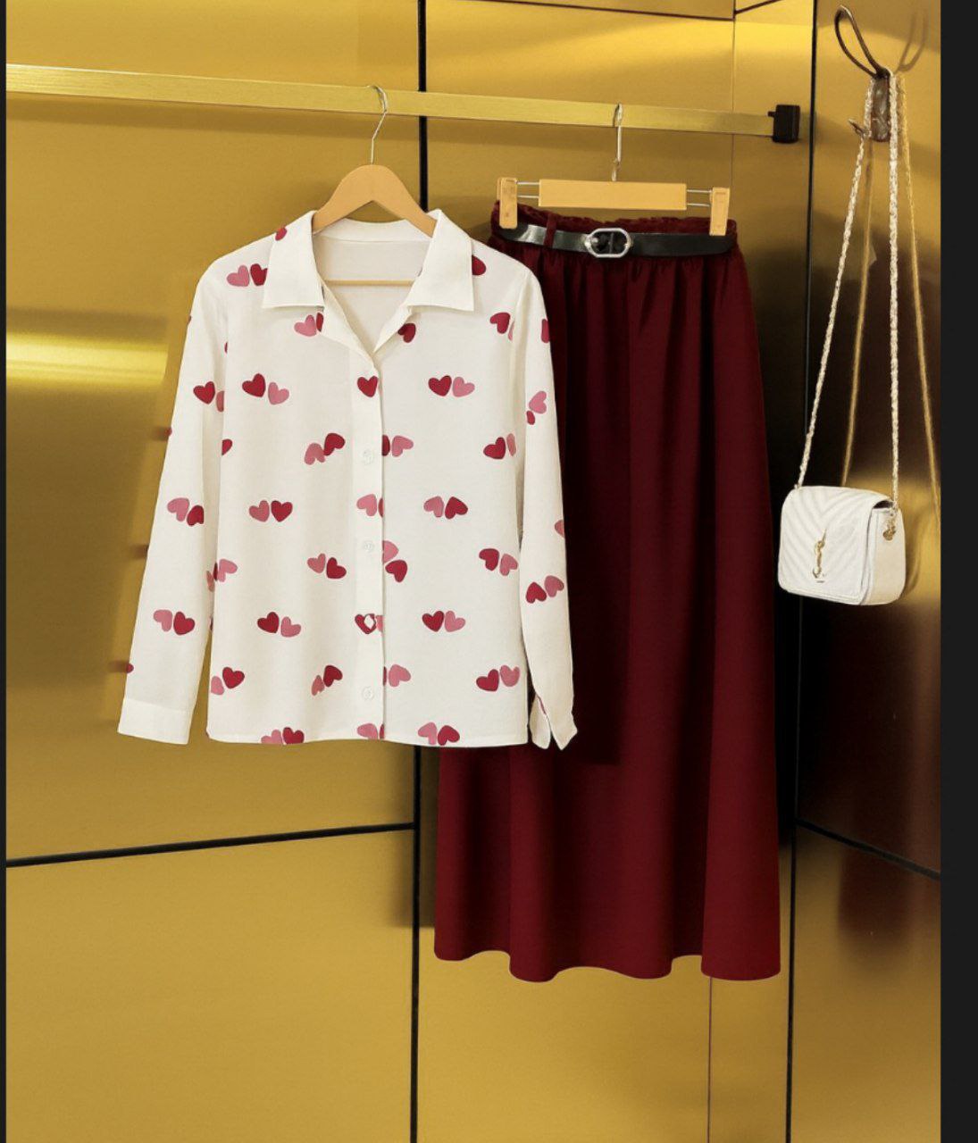 ست سه تیکه زنانه مدل قلبی شومیز +دامن+کمربند جنس شومیزبوگاتی و دامن ترگال