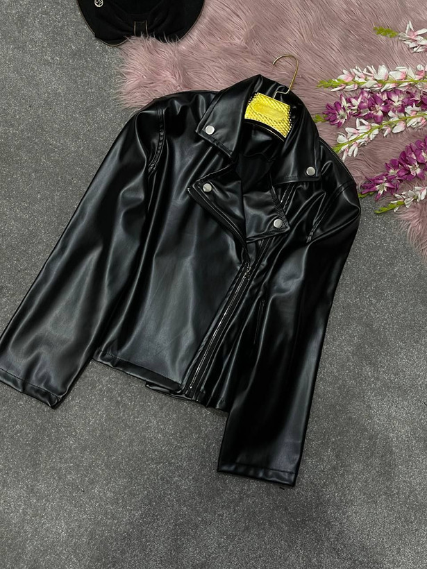 کت کوتاه چرم زنانه مدل حدیث جنس چرم بفوق العاده با کیفیت سایزبند ی 38 تا 46