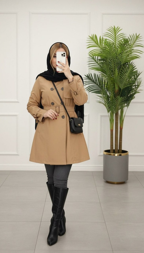 مانتوبارونی زنانه مدل کیانا با جنس تی سی آستردار مناسب فصل