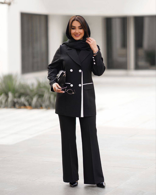 کت شلوار زنانه مدل پرگل جنس مازراتی سایزبندی 38 تا 48