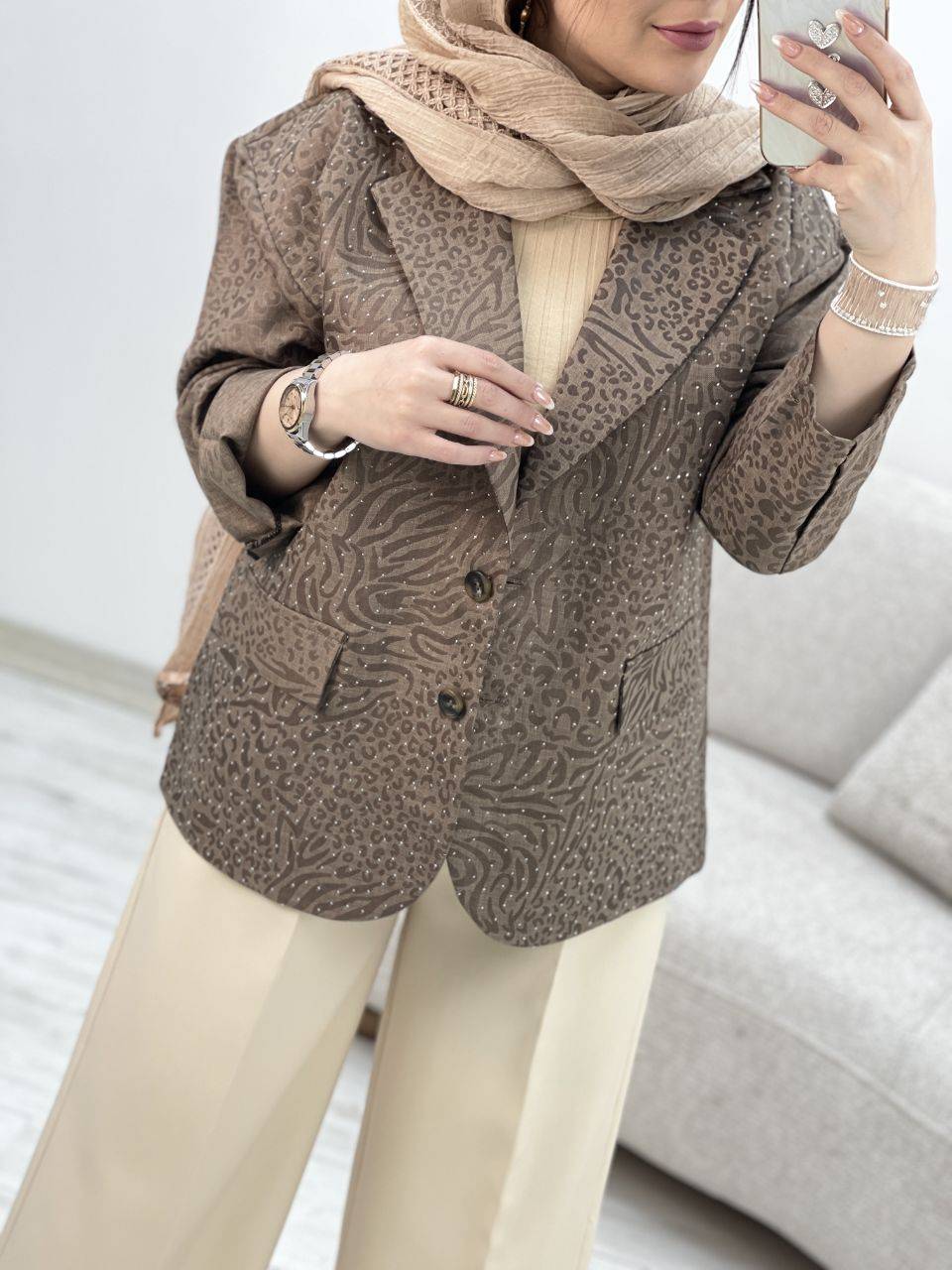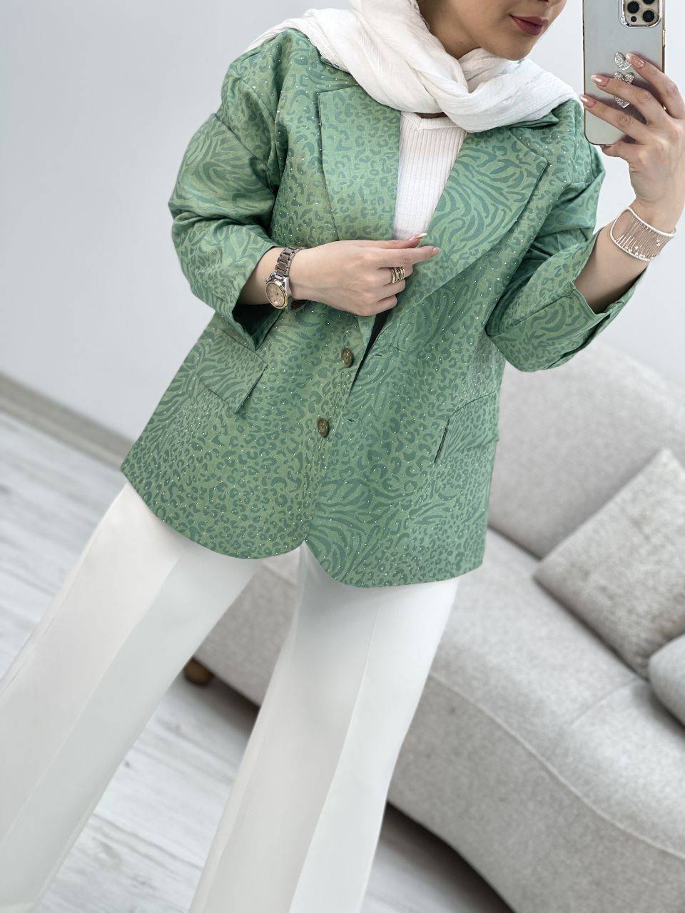 دستهبندی: کتجنس: بزیاقسایزبندی: فری سایز 38 تا 46قد کار: حدودا 70 سانتقد آستین: 52 سانتدور بازو : 44 سانتدور سینه : 116 سانتنمایش بیشتر
